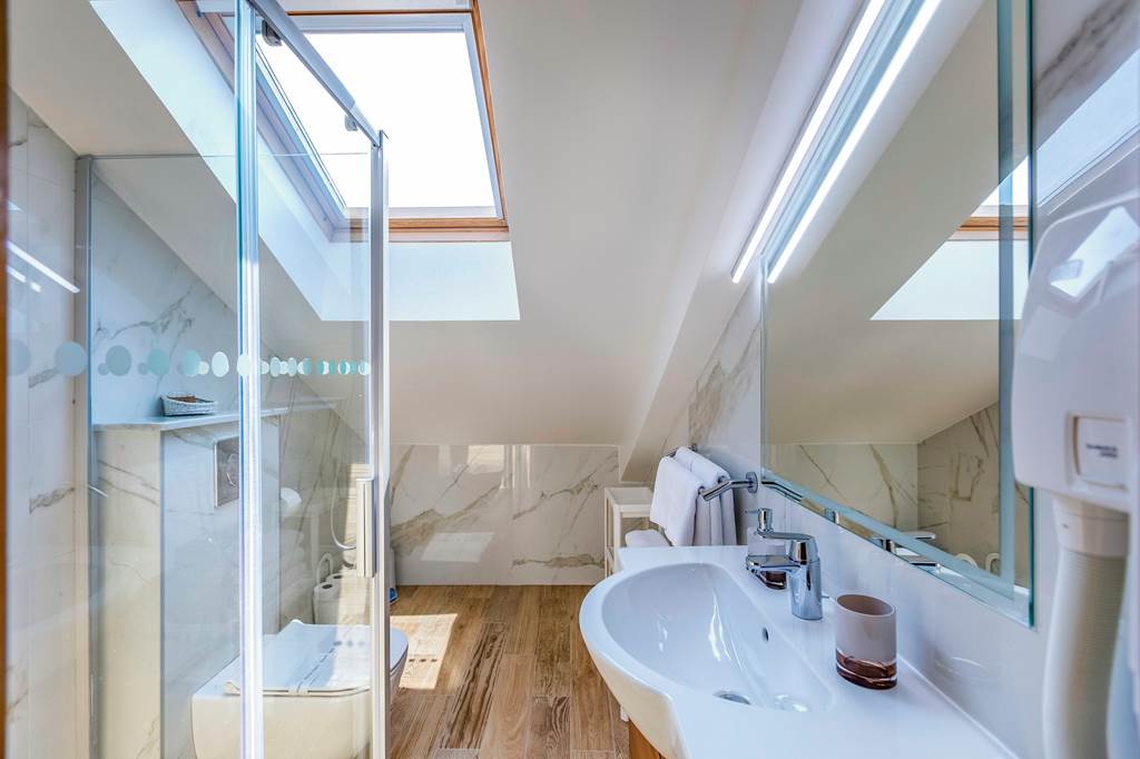 One Bedroom apartments sleep up to 3 adults or 2 adults and 1 child with a double bed and sofa bed and have a bathroom with shower only, hairdryer, air conditioning, satellite TV, kitchenette including fridge, cooking rings, microwave, toaster, dishwasher and tea and coffee making facilities and free Wi-Fi. Two Bedroom apartments sleep up to 5 adults or 4 adults and 1 child with double bed, twin beds and sofa bed and have a bathroom with shower only, hairdryer, air conditioning, satellite TV, kitchenette including fridge, cooking rings, microwave, toaster, dishwasher and tea and coffee making facilities and free Wi-Fi. These rooms are located on the top floor in the attic of the property. Two Bedroom apartments with Sea View and Balcony are available on request. Please note that One Bedroom apartments and Two Bedroom apartments without Sea View are without a balcony.