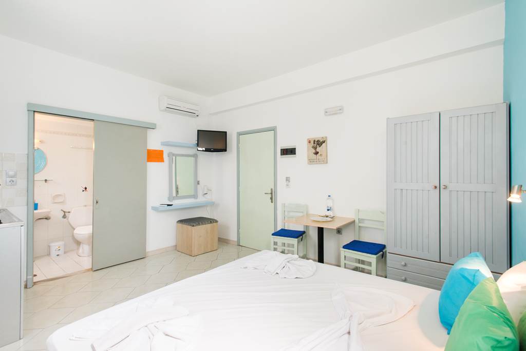 Studios sleep up to 2 adults and have bathroom containing a shower, air conditioning, fridge, tea and coffee making facilities and a terrace.