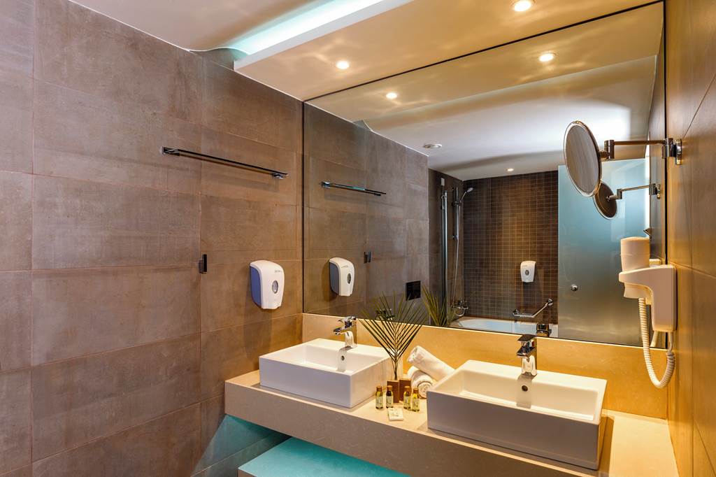 Double rooms sleep up to 3 adults and have a full bathroom, hairdryer, air conditioning, satellite TV and balcony or terrace. Sea View rooms, Family rooms sleeping up to 3 adults and 1 child and Superior Family rooms are also available.
