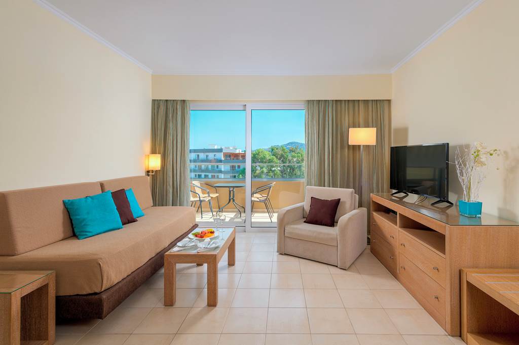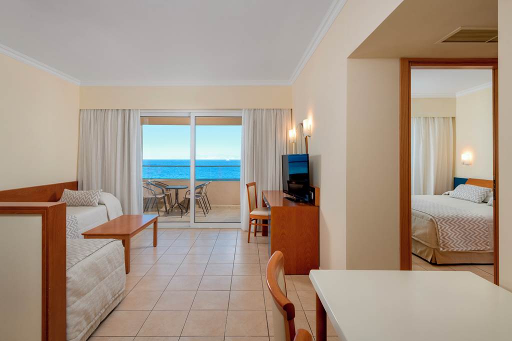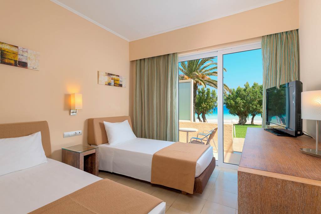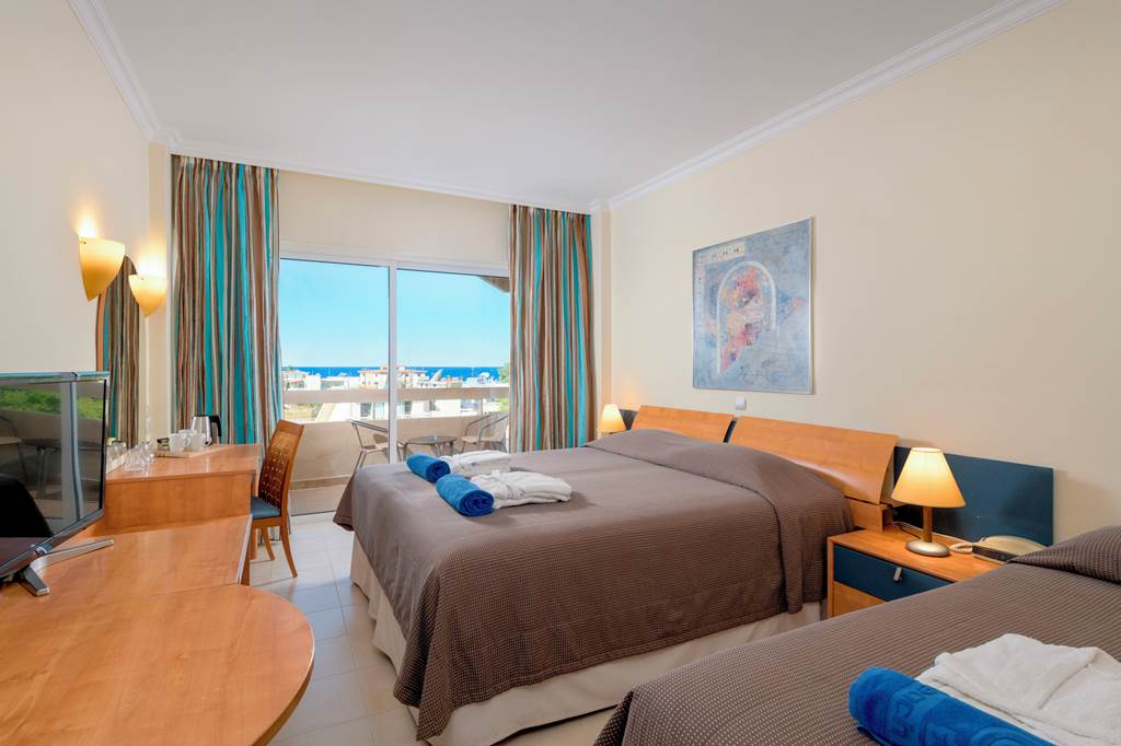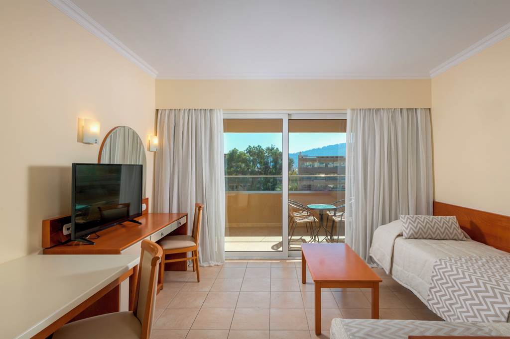 Standard twin rooms sleep up to 3 adults and have a bathroom containing a bath with shower attachment, air conditioning (01 Jun-30 Sep), hairdryer, television, fridge and balcony or terrace. Standard Family rooms, Superior Twin rooms, Deluxe suite apartment with Garden View, Deluxe suite apartments with Sea View and Double room for Sole Use are also available. Deluxe suite apartments also have coffee making facilities, bathrobe and slippers, dvd player, double cooking rings, microwave, fridge freezer and toaster.