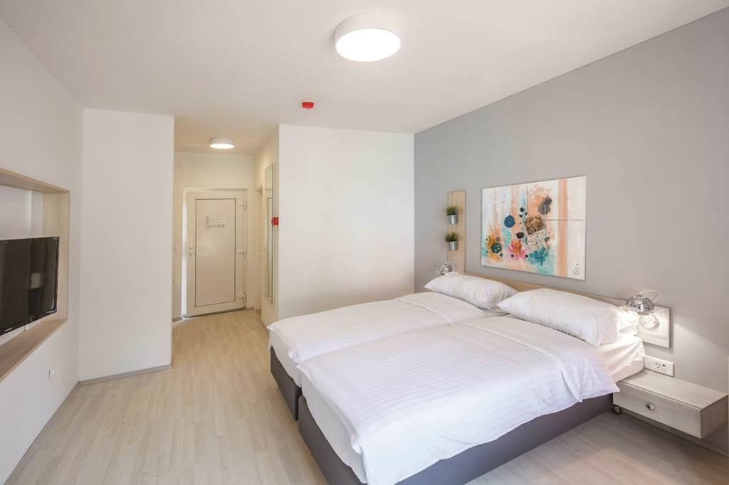 Double rooms sleep up to 2 adults and have bathroom with bath or shower, air conditioning hairdryer and television. Rom upgrade options are also available.
