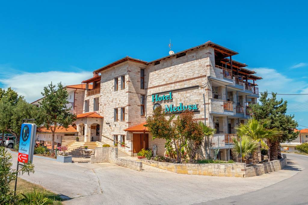 You will find the welcoming Hotel Medusa close to the picturesque village of Kriopigi. Featuring a large pool area, modern amenities and sea views you can be sure of a friendly and relaxing stay. Whether you choose to take it easy with a cocktail around the pool or venture into the resort centre to explore the beaches and traditional tavernas, the Hotel Medusa will provide the perfect base for your holiday.