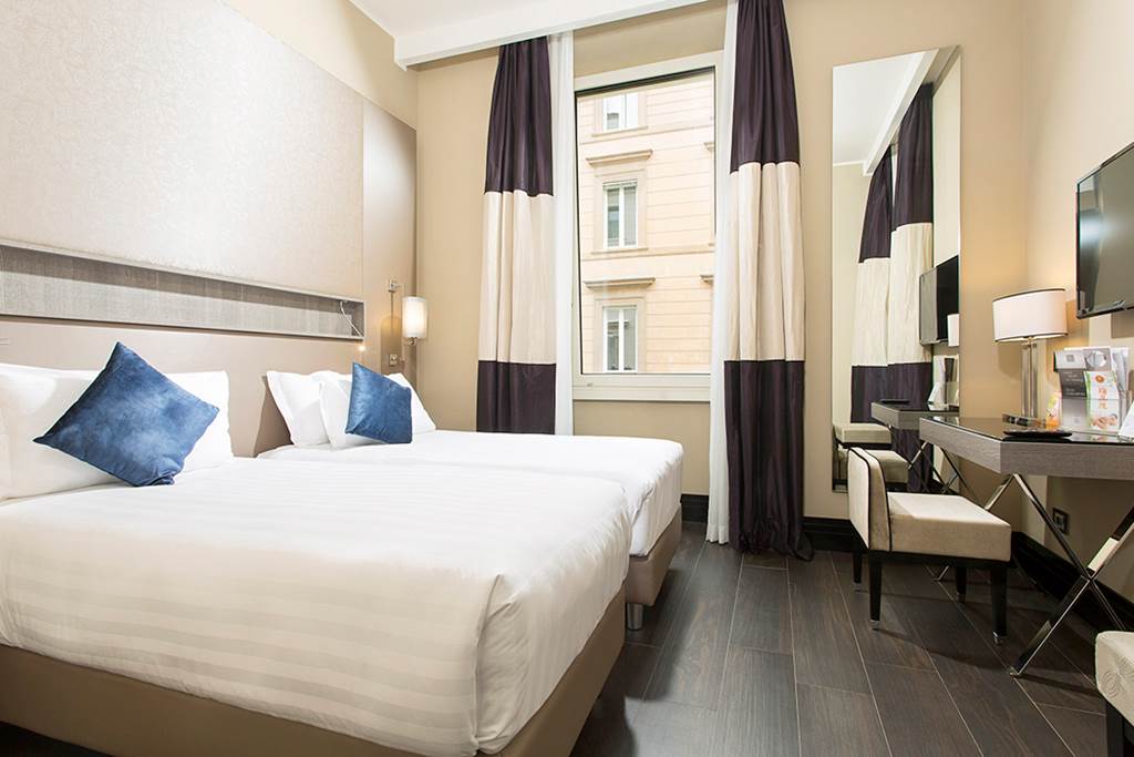 Classic Double or Twin rooms sleep 2 adults and have bathroom containing a shower, air conditioning, hairdryer, flat screen television, Smartphone, mini-bar* (complimentary on arrival), tea and coffee making facilities and safety deposit box. Classic Single rooms are also available.