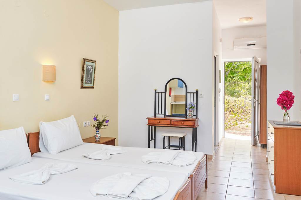 Studio sleeps up to 2 adults and includes bathroom with shower, kitchenette and balcony or terrace. One bedroom apartment sleeps up to 4 adults or 2 adults and 2 children and includes bathroom with shower, kitchenette and terrace.