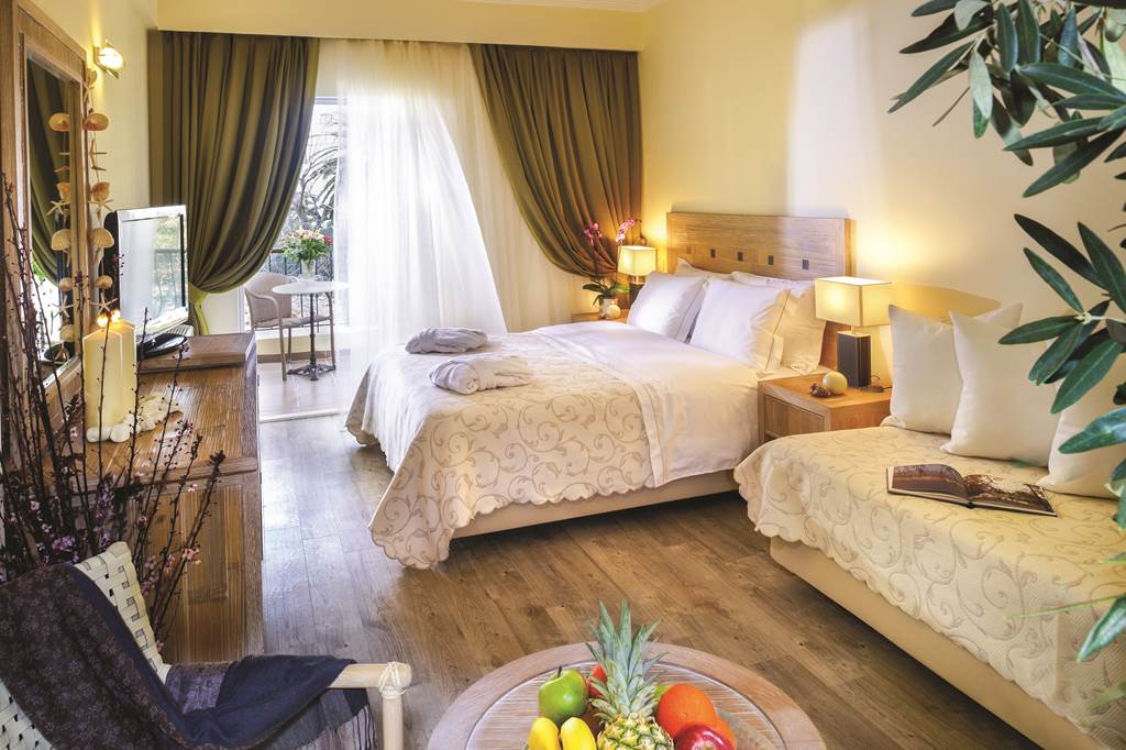 Double rooms sleep up to 3 adults or 2 adults and 2 children and have a bathroom containing bath or shower, air conditioning, hairdryer, television, fridge and balcony or terrace. Sole Use rooms are also available.