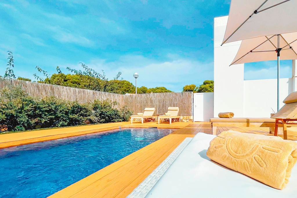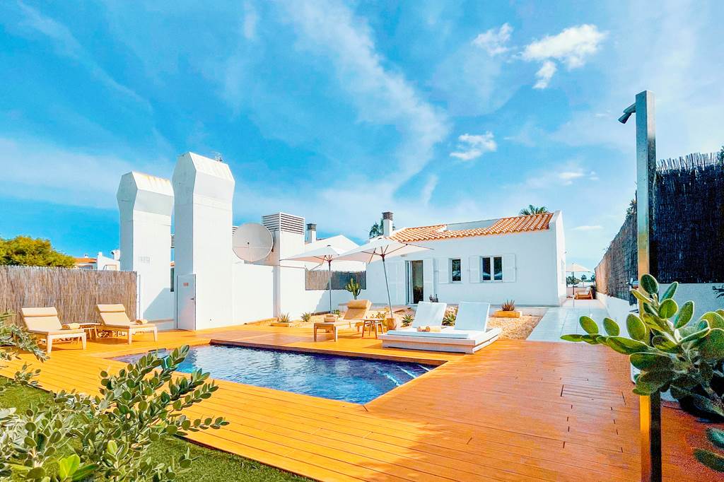 Step into relaxation at the Villas & Bungalows Del Lago. These modern villas & bungalows are a peaceful haven, but with the resort and beach on your doorstep - the perfect combination! With a beach style communal lagoon pool, kids playground and plenty of greenery surrounding the Bungalows, you will feel at peace with the world here. The well-equipped bungalows boast large terraces, perfect for soaking up the Menorcan sun. Villas come with a fully equipped kitchen, open plan lounge, terrace for dining al fresco and their own inviting private pool.