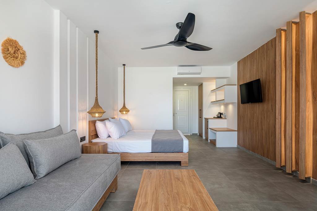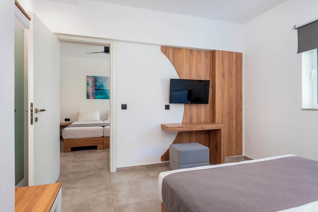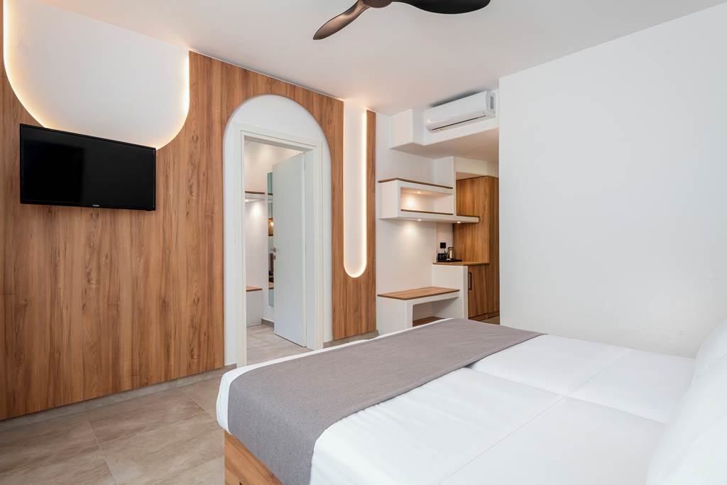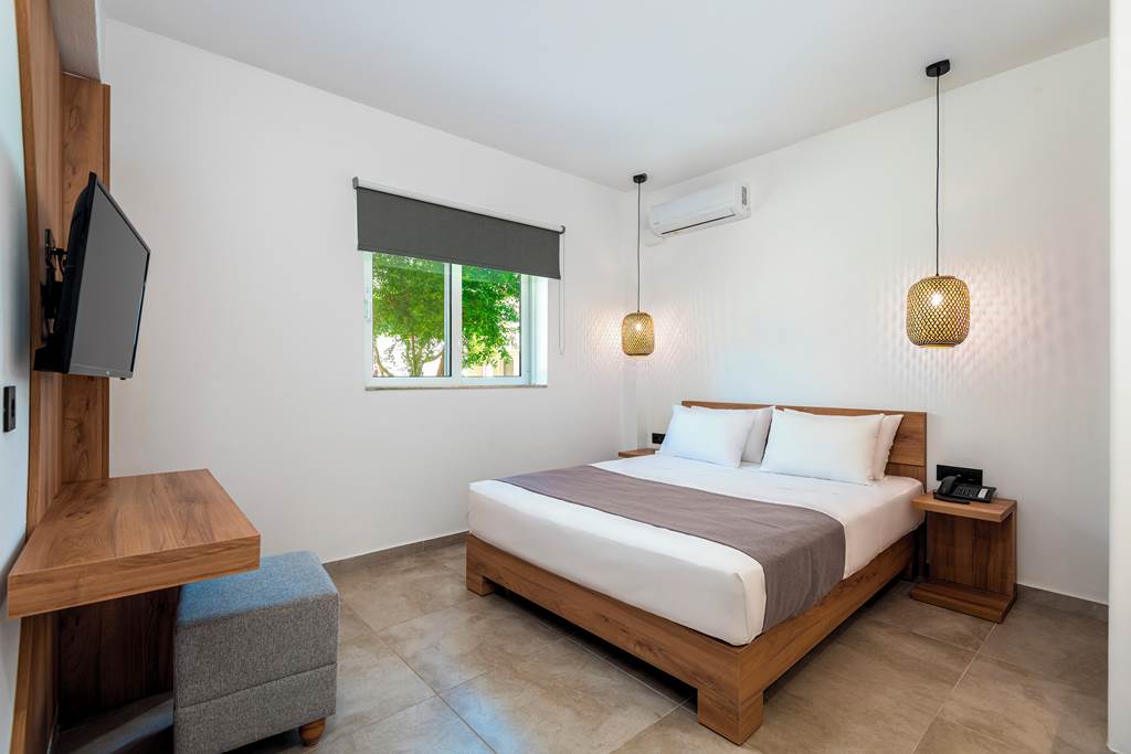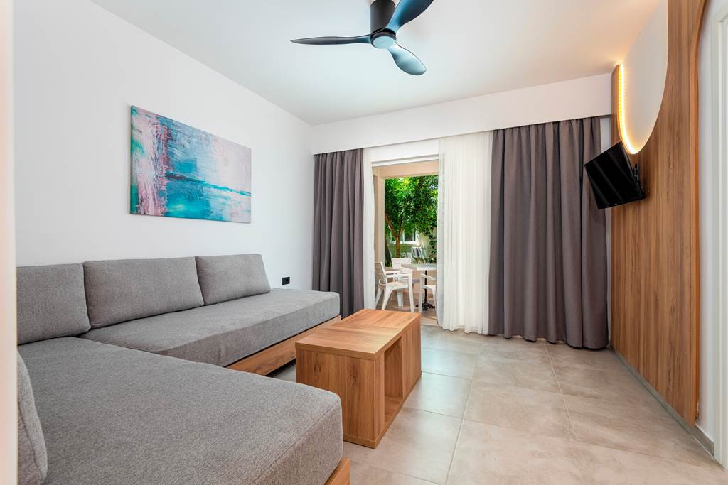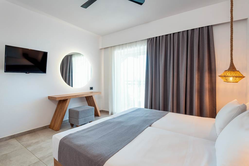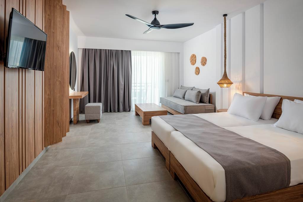 Double and twin rooms sleep up to 3 adults and have bathroom containing a bath, air conditioning, hairdryer, television and balcony or terrace. Family rooms and single rooms are also available.