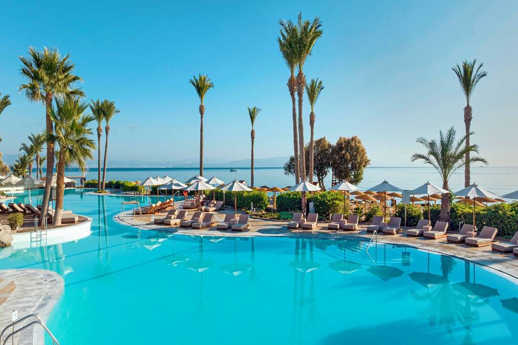 Boasting beautiful sea views and a sleek pool area, the Grecotel LUXME Kos is a little piece of luxury on the North East coast of Kos. With a perfectly manicured pool area, complete with water features, lazy rivers and flowering gardens looking out over Psalidi?s pebble beach, there are plenty of places to soak up the sun. Rooms and Bungalows are classically styled, elegant and feature all the niceties for a relaxing stay. Couples will truly appreciate the excellent cuisine on offer at the à la carte restaurants as well as the Thalasso spa.