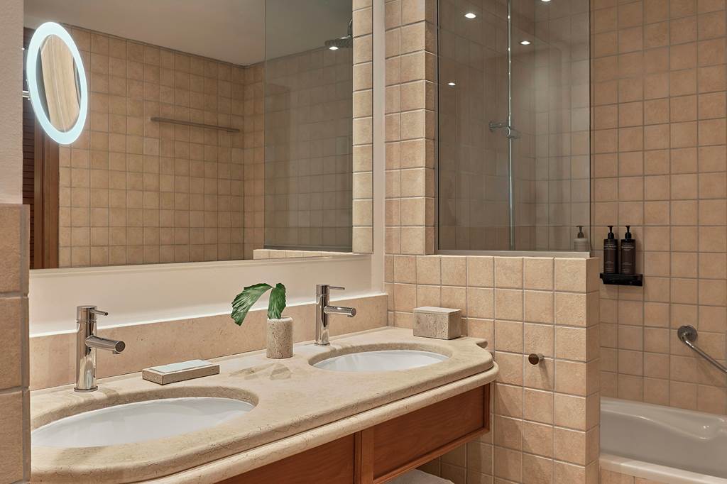 Double rooms sleep up to 3 adults and have bathroom containing a bath, air conditioning, hairdryer, bathrobe and slippers, flat screen television, fridge and balcony or terrace. Room upgrade options are also available.