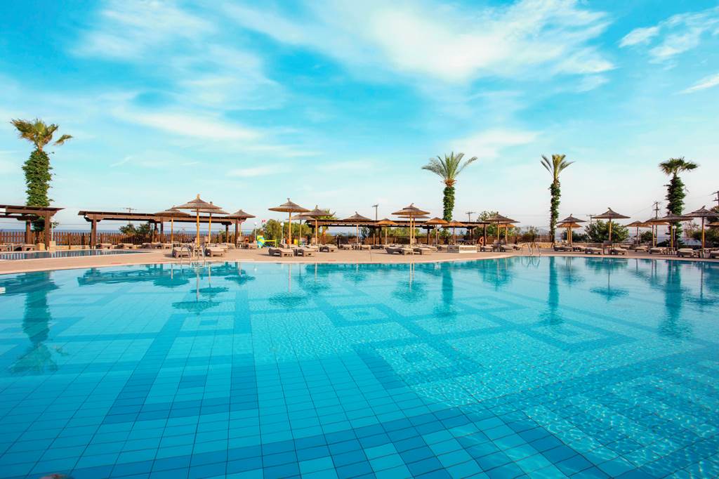 With an ideal hillside location across a quiet road to the sea sits the Grand Blue Beach Hotel, this modern style hotel has all you need for an enjoyable holiday on the beautiful island of Kos. The outdoor pool offers a terrace where you can relax enjoying the view or watch the children as they splash happily in the children's pool. The children's club will also keep them entertained while you soak up the sun, enjoying refreshments from the pool bar or even a workout at the gym for the more active. With a range of activities on offer, this hotel is perfect for families and couples looking for that bit extra for their holiday.