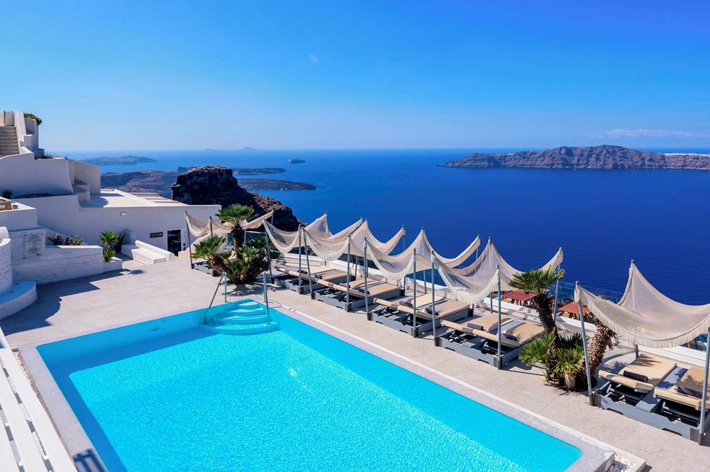 Perched on the breathtaking cliffs of Imerovigli, you?ll find Andromeda Villas. From the moment you step inside, you?ll find nods to the stunning beauty of the island, with classic sugar-cube buildings housing neutral and blue tones, which perfectly complement each other. Panoramic views of the infamous Santorini caldera can be enjoyed from both the pool and the restaurant, and the views even extend to some of the rooms. The location is pretty impressive too, with Imerovigli close by and some of the island?s attractions in reach. Whether your days are spent exploring, or simply enjoying the beautiful views from the comfort of a sunlounger, Andromeda Villas is a great place to do it from.