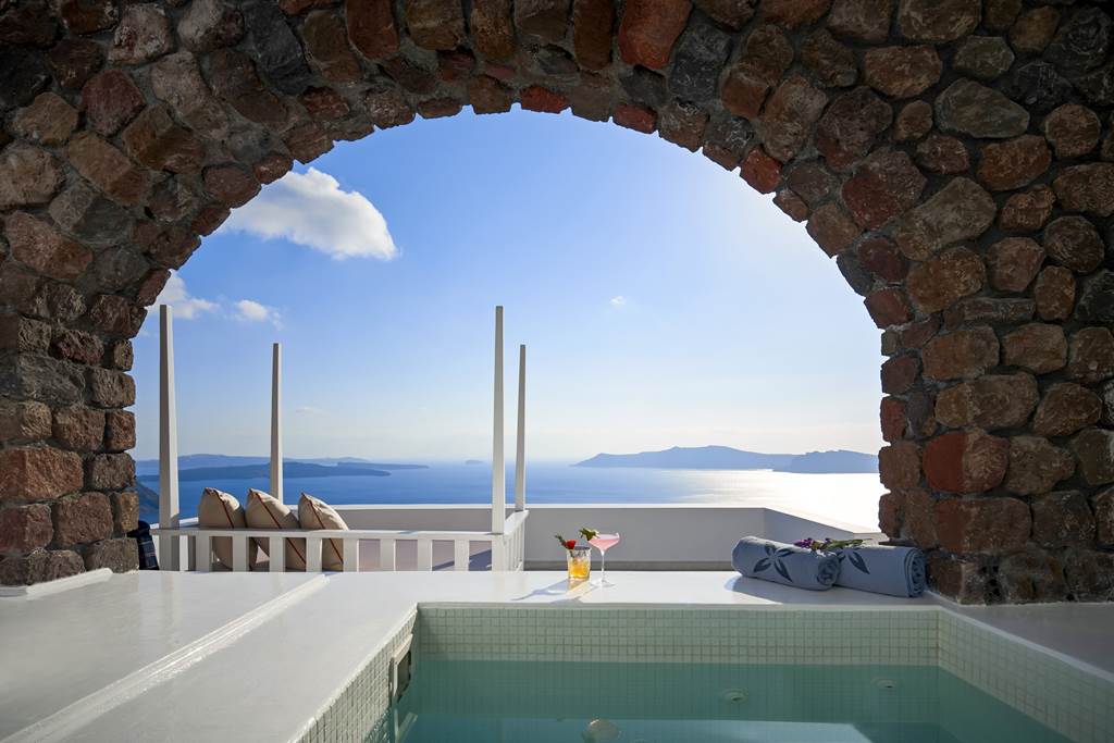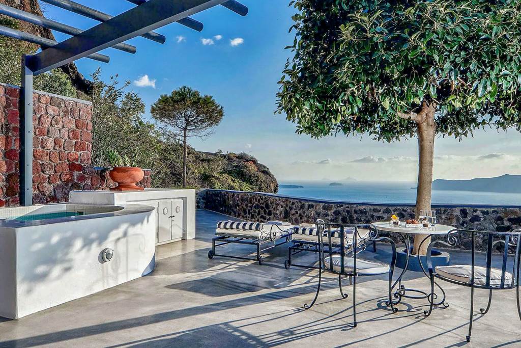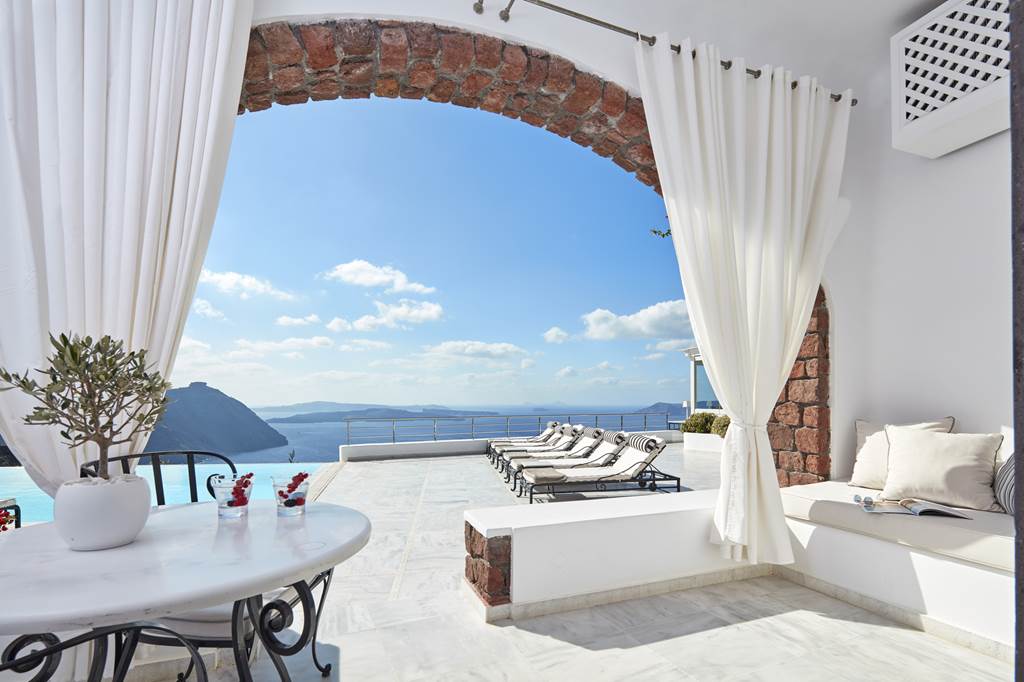 Offering excellent Caldera views from the stunning infinity pool, San Antonio Hotel is a peaceful property that's idea for couples. A relaxed and laid back hotel, rooms and suites are spacious, comfortable and are decorated in a traditional Cycladic style, with calming colours of white and grey throughout. Have breakfast by the pool overlooking the Caldera before spending a day taking in the views from the terrace. Oia, Imerovigli and Fira are all a short drive away too.