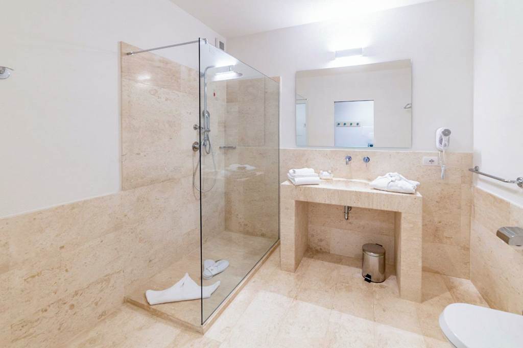 Double rooms sleep up to 2 adults and have bathroom containing a shower only, air conditioning, hairdryer, television, kettle and balcony or terrace. Sole Use rooms are also available.