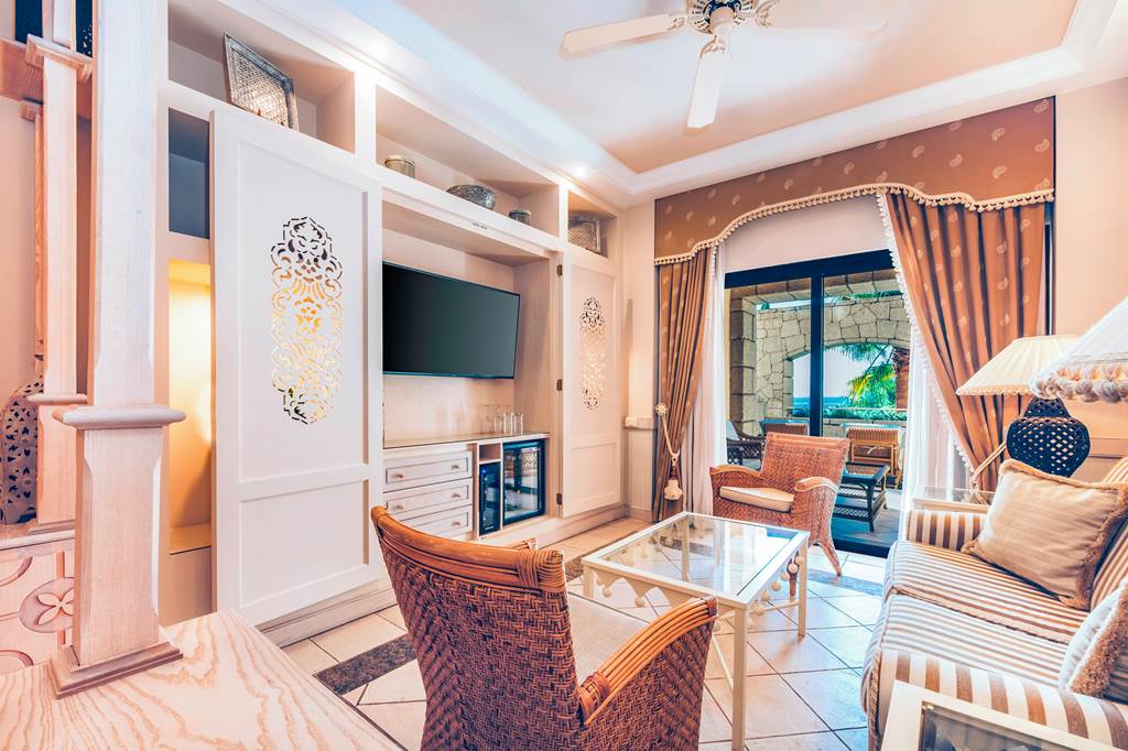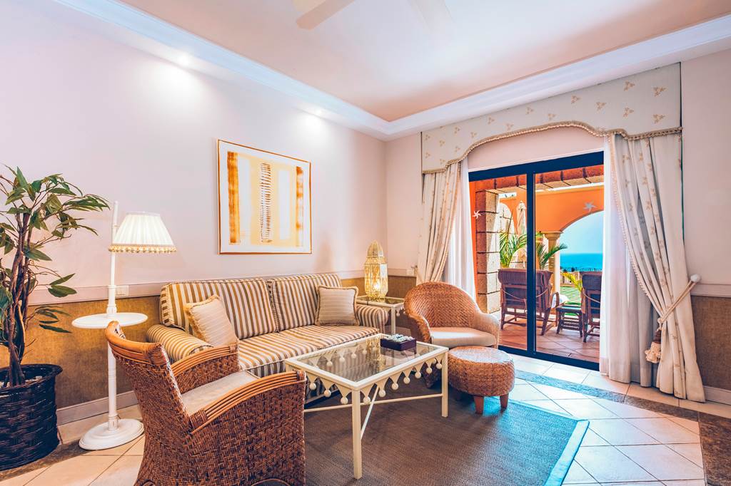 Junior suites sleep a maximum of 3 adults and have air-conditioning, satellite TV, mini-bar, safety deposit box, hairdryer, bathrobes and bathroom with bathtub and separate shower. Junior suite sea view, Superior junior suites and Suite sea views are also available.