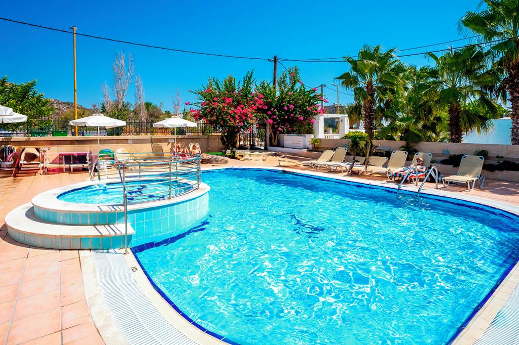 Located on the outskirts of Faliraki stands the Elarin Studios and Apartments. This lovely Self Catering property has all that you need for your break in Rhodes. Studios come equipped with kitchenettes and everything that you would need for a basic home from home stay. Outside there is a good-sized pool area with plenty of space perfect for soaking up the Grecian sun. The hotel is located a short walk away is the beach and the resort centre making this a great place to explore the resort and its surroundings.