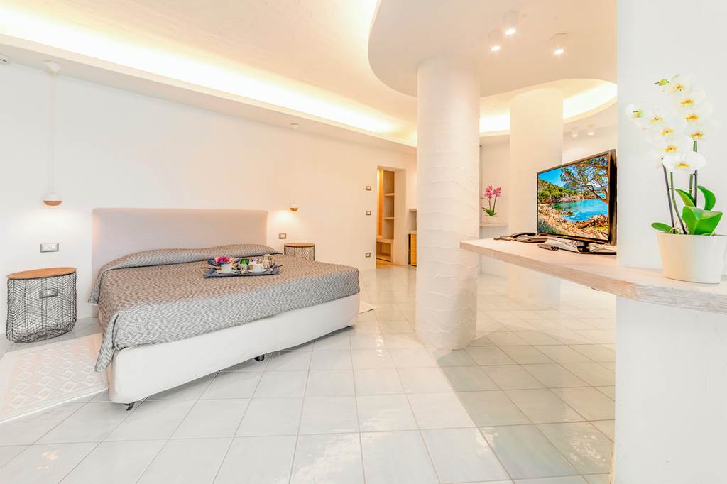 Set back a few meters from the crystal-clear waters of Cala Battistoni beach stands the luxurious Club Hotel Baja Sardinia. The hotel offers impressive views, spectacular service and facilities that will leave you feeling spoilt for choice. There are three restaurants and an outdoor American bar offering the perfect blend of music and cocktails. Plus, the bustling resort centre of Baia Sardinia is just minutes away. The hotel also boasts its own reserved section of rocky beach.