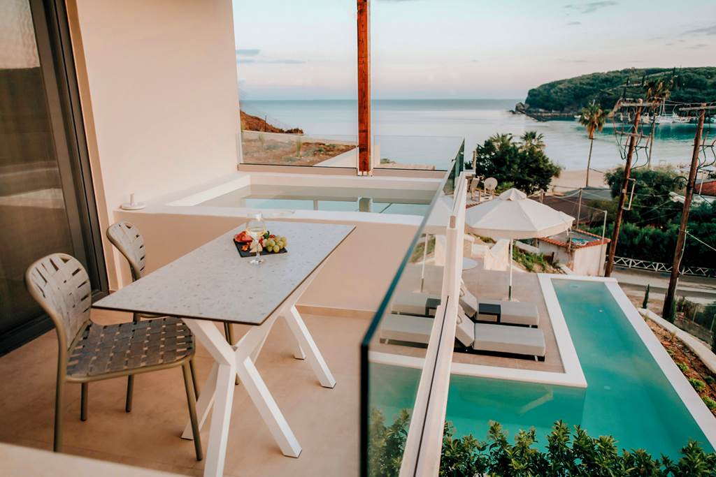 With a peaceful hillside location and just a stone's throw from Valtos Beach, the beautiful Somnus Suites is a small and intimate retreat. With a bohemian style throughout, spaces are open and modern and as an added luxury, suites come with a small plunge pool. A handful of bars and restaurants can be found along the beach or Parga resort centre is 1.5km away.