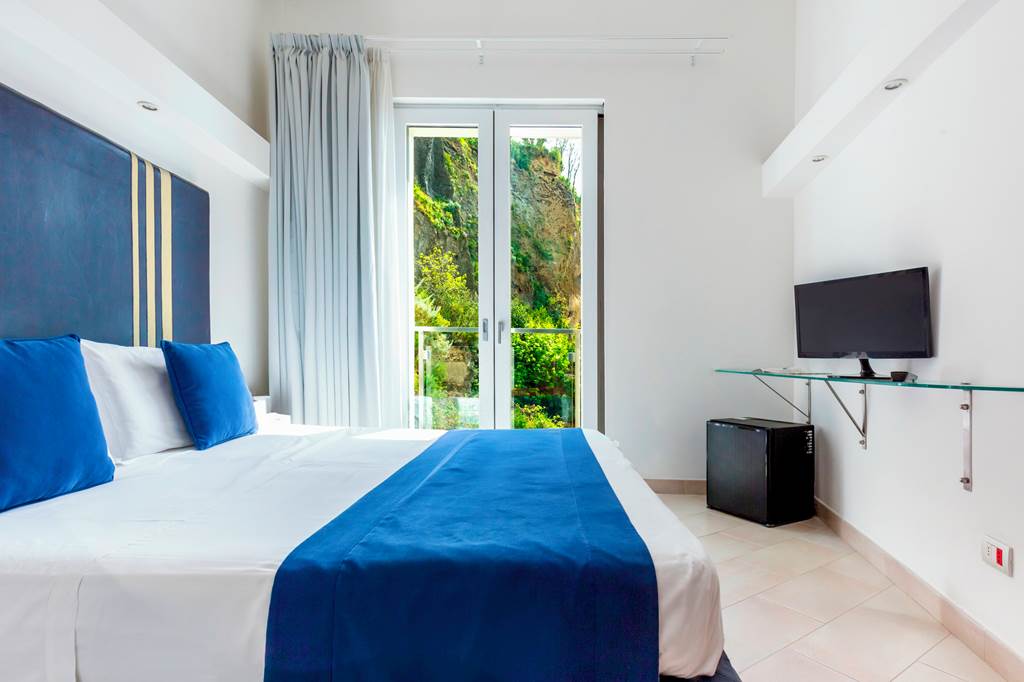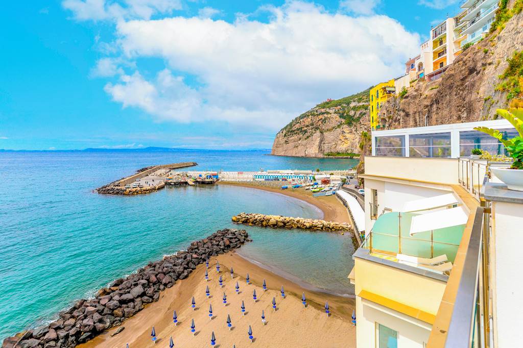 Perched peacefully on the beach, Hotel Giosue A Mare stands out for its splendid panorama, fresh interiors and friendly atmosphere. The hotel's restaurant serves up seafood specialities while the rooftop bar hosts a carefully curated cocktail selection, plus the perfect sunset. Explore the laidback seafront town of Meta di Sorrento or take the hotels complimentary shuttle to Meta train station to explore further afield.