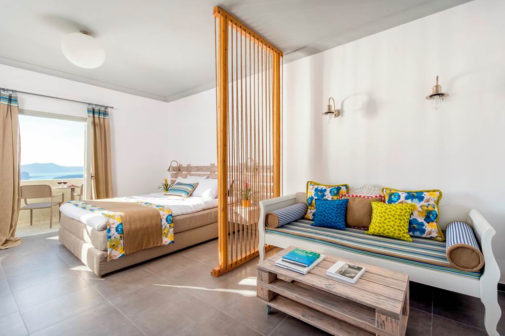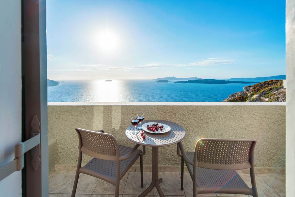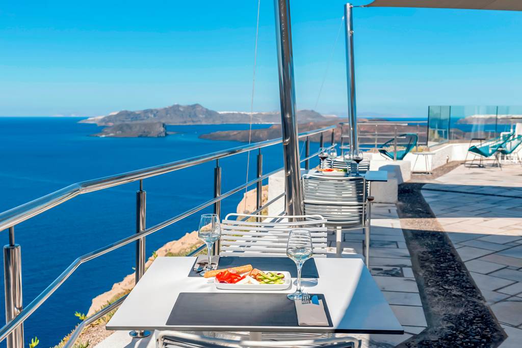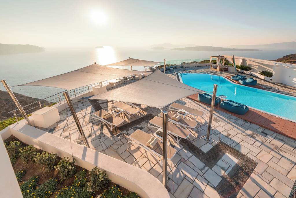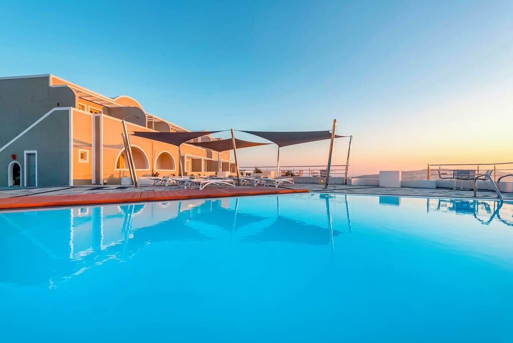 Fresh, bright décor characterises the design of Caldera's Dolphin, a luxurious hotel situated in a stunning clifftop location ? as its name suggest ? overlooking the caldera. From the outdoor pool and spacious sun terrace, you?ll have incredible views of the sun-soaked landscape and seafront. The à la carte restaurant is on the same panoramic platform. As you?ll be on the west coast of Santorini, you can expect spectacular sunsets to illuminate the evening sky. It?s also just a short journey to the charming village of Megalochori. Discover the local wineries and tavernas, or head north to enjoy the bigger selection of shops in Thira.