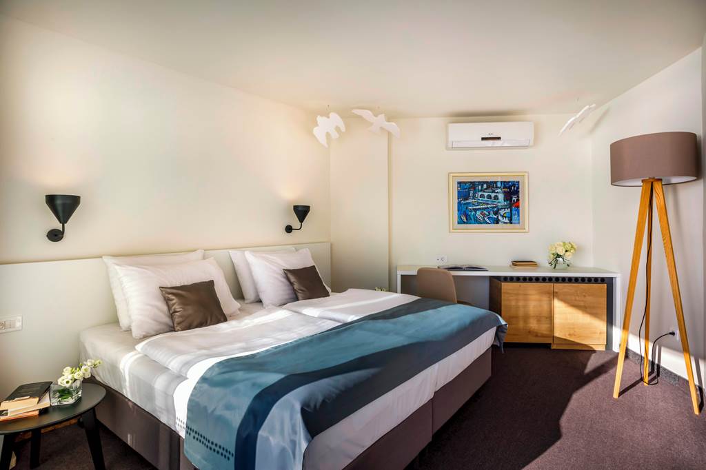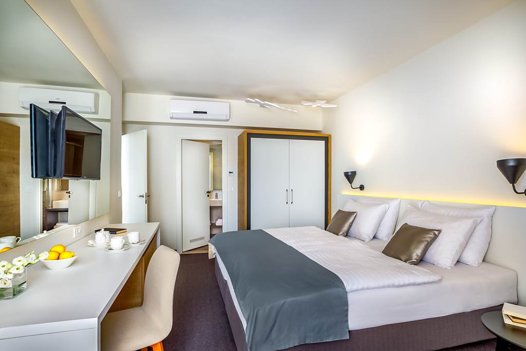 Double rooms sleep up to 2 adults and 1 child and have a bathroom with shower, hairdryer, air conditioning (Jul-Aug), flat screen satellite TV, free Wi-Fi and a balcony. Garden View rooms, Side Sea View rooms, Sea View rooms and Double rooms for Sole Use are also available.