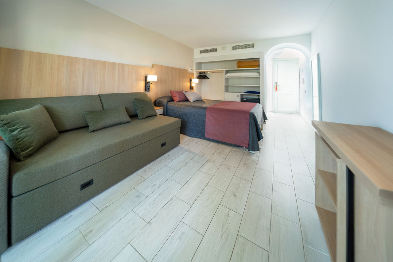 Twin rooms sleep up to 3 adults and 1 child and have a full bathroom, air conditioning, satellite TV and balcony or terrace.