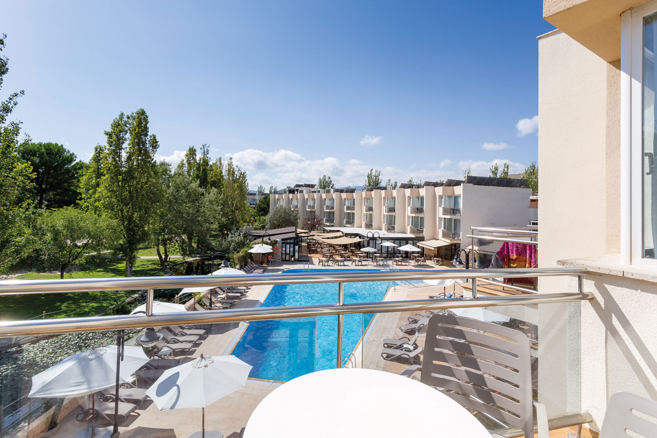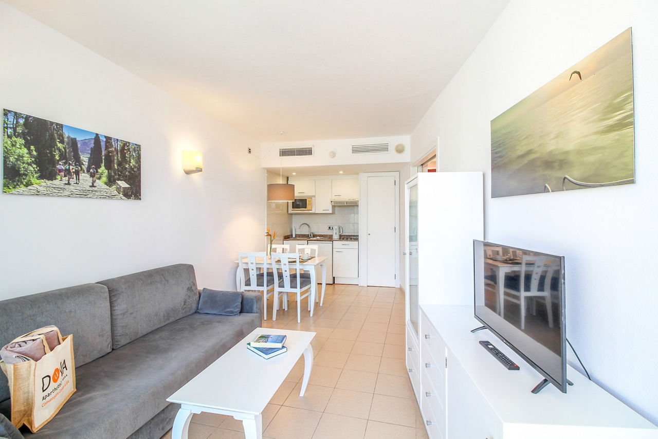 One Bedroom apartments sleep up to 4 adults and have bathroom containing a bath with shower attachment, air conditioning (May-Oct), flat screen television, toaster, fridge, kettle, microwave, double cooking facilities and balcony or terrace. Room upgrade options and Sole Use rooms are also available.