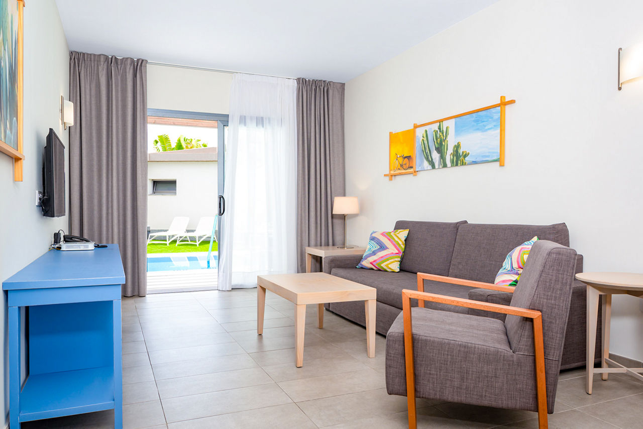 The wonderful pool area takes pride of place in the Caybeach Princess, with dazzling waterfalls, hydro massage beds and split-level areas, there is fun for all ages at this family friendly hotel. With spaciously laid out grounds and bungalows, you can relax with a chilling drink from the pool side snack bar whilst basking in the Canarian sun, or enjoy a quiet breakfast in the buffet restaurant before a trip to Maspalomas beach on the shuttle bus. If you fancy something a little more vibrant the buzzing resort of Playa Del Ingles is a short taxi ride away.