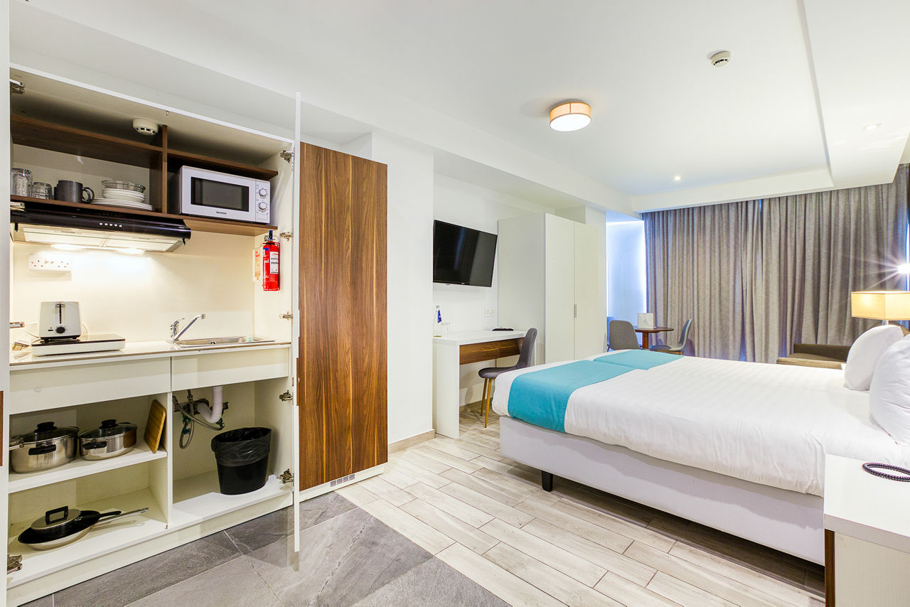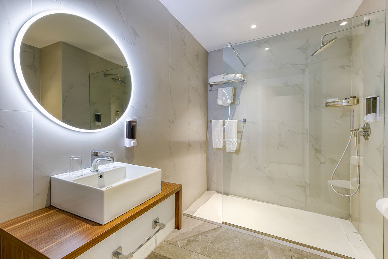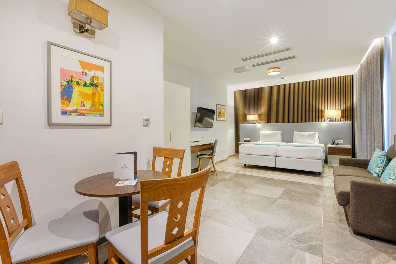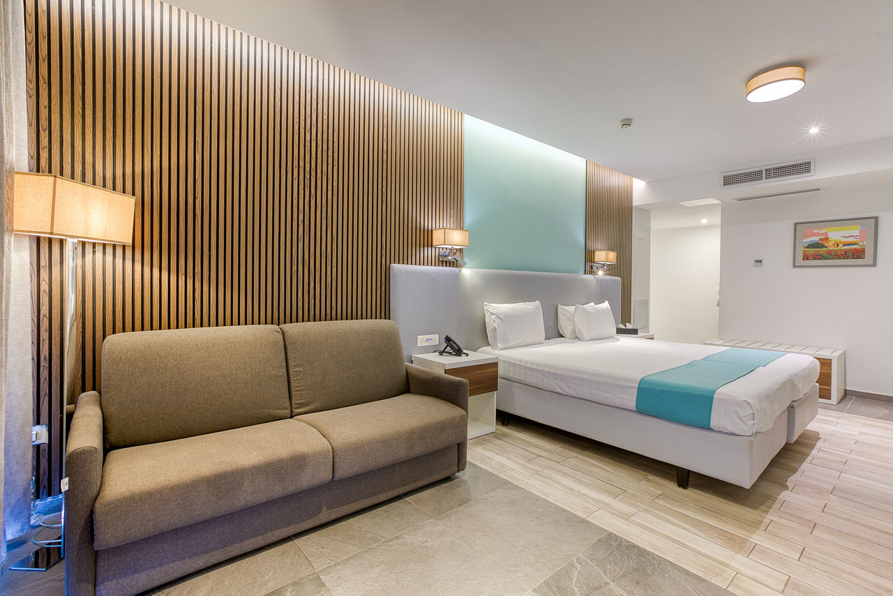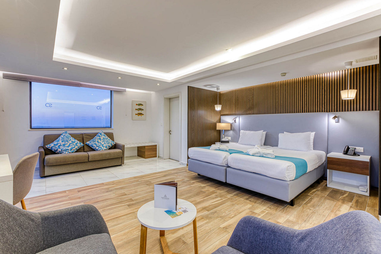 Internal Double and Twin rooms sleep 2 adults and have a full bathroom, hairdryer, air conditioning, satellite TV, fridge, tea and coffee making facilities, safety deposit box* and Wi-Fi* (please note, this is an internal room with no balcony or window). Standard Double and Twin rooms sleeping up to 3 adults with a balcony or terrace, Junior suites sleeping up to 3 adults with a balcony or terrace and with a kitchenette, Deluxe studios sleeping up to 4 adults with a balcony or terrace and with a sofa, kitchenette and dining facility, Double and Twin rooms for Sole Use or Single Parent Use and Junior suites for Sole Use or Single Parent Useare also available.