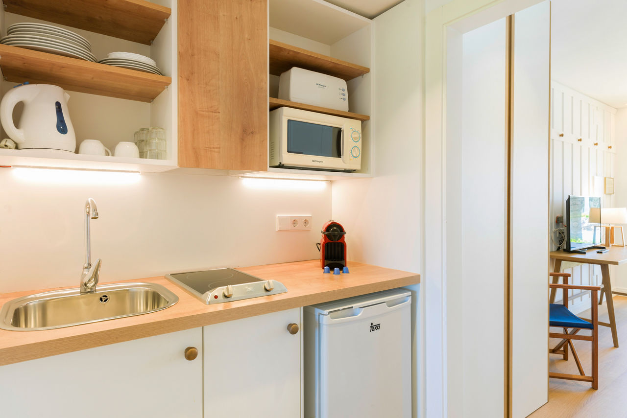 Junior suites sleep up to 3 adults and have bathroom containing a shower, air conditioning, hairdryer, flat screen television, kettle and balcony. Suites sleeping up to 4 adults with bathroom containing a shower, air conditioning, hairdryer, flat screen television, kitchenette including microwave, fridge, toaster, kettle and Nespresso machine and balcony or terrace are also available.
