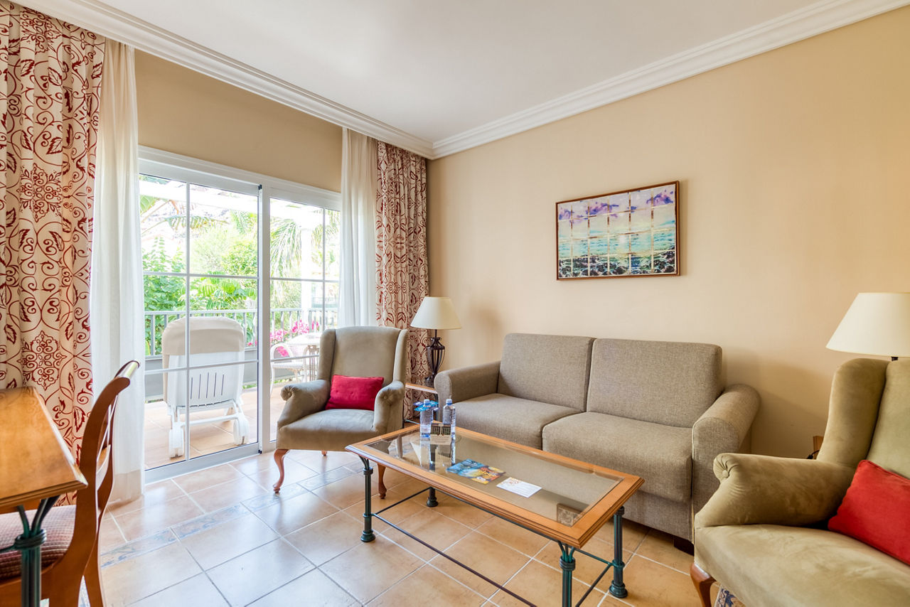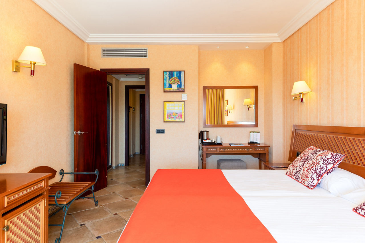 Standard rooms sleep up to 2 adults and 1 child and have full bathroom, hairdryer, air conditioning, LCD flat screen satellite TV, DVD player, fridge and a balcony or terrace. Junior suites sleeping up to 2 adults and 1 child are also available and are located in a separate, quiet area of the complex. Junior suites also have a separate living area and use of a separate restaurant, serving breakfast and lunch, which is located in the Suite area of the complex and include one a la carte dinner per week. Family rooms sleeping up to 3 adults and 2 children and consisting of one double and one single room with an interconnecting door, are also available.