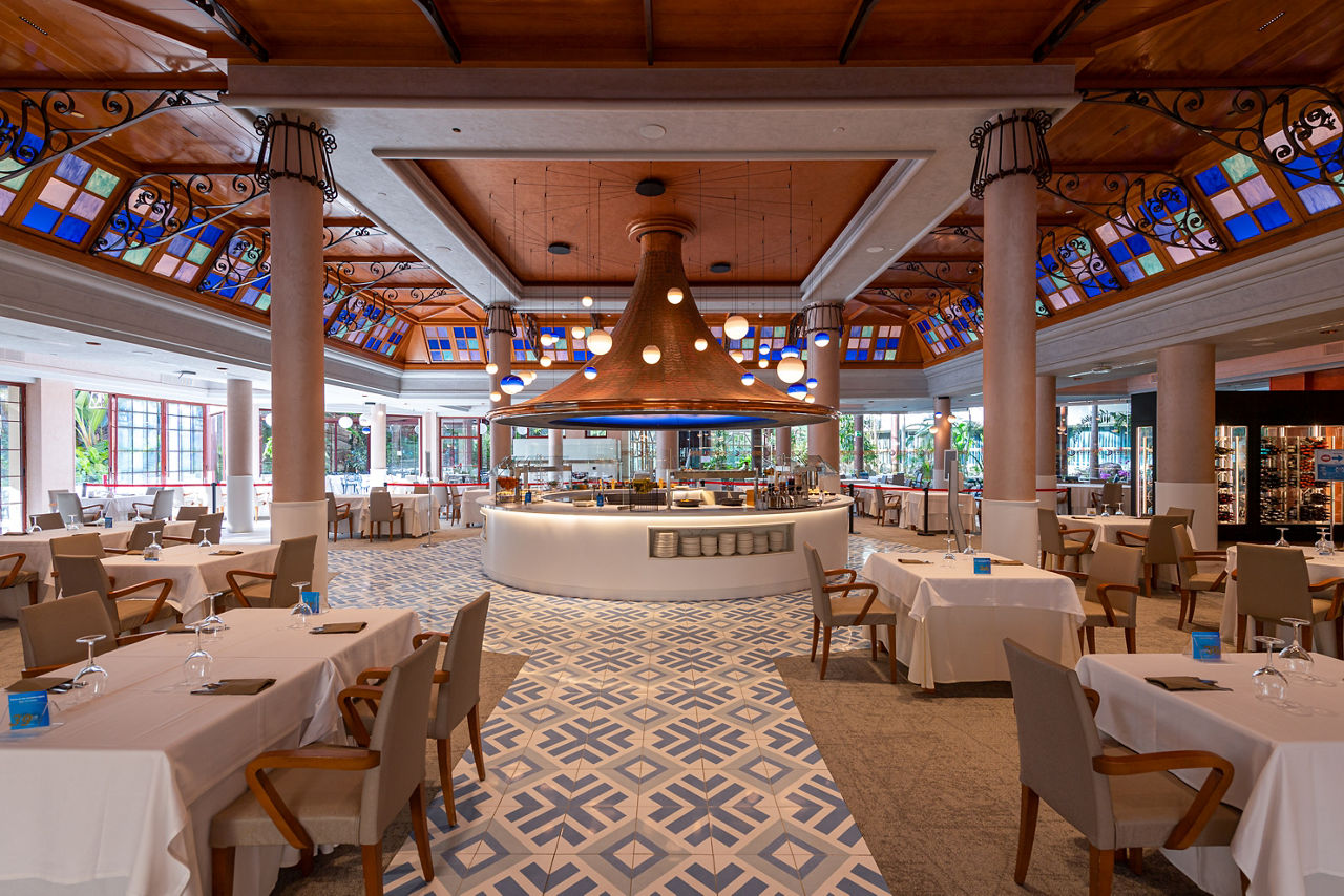 Two buffet restaurants; main restaurant open for breakfast and dinner and the other open for breakfast (guests in Junior Suites only) and lunch. A la carte restaurant open in the evenings only and serving traditional Canarian cuisine (reservation required and hotel guests receive a small discount). Two pool bars. Disco bar. Lobby barEntertainment