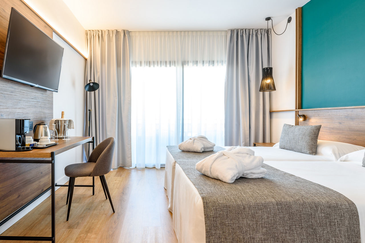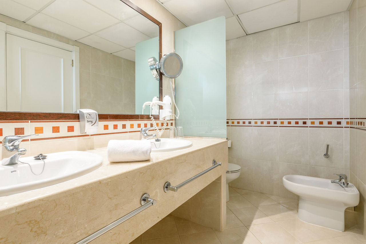 Twin rooms sleep up to 3 adults or 2 adults and 1 child and have a full bathroom, hairdryer, air conditioning, satellite TV and a balcony or terrace. Sea view rooms, Twin rooms for sole use, Single rooms and Junior suites are also available.