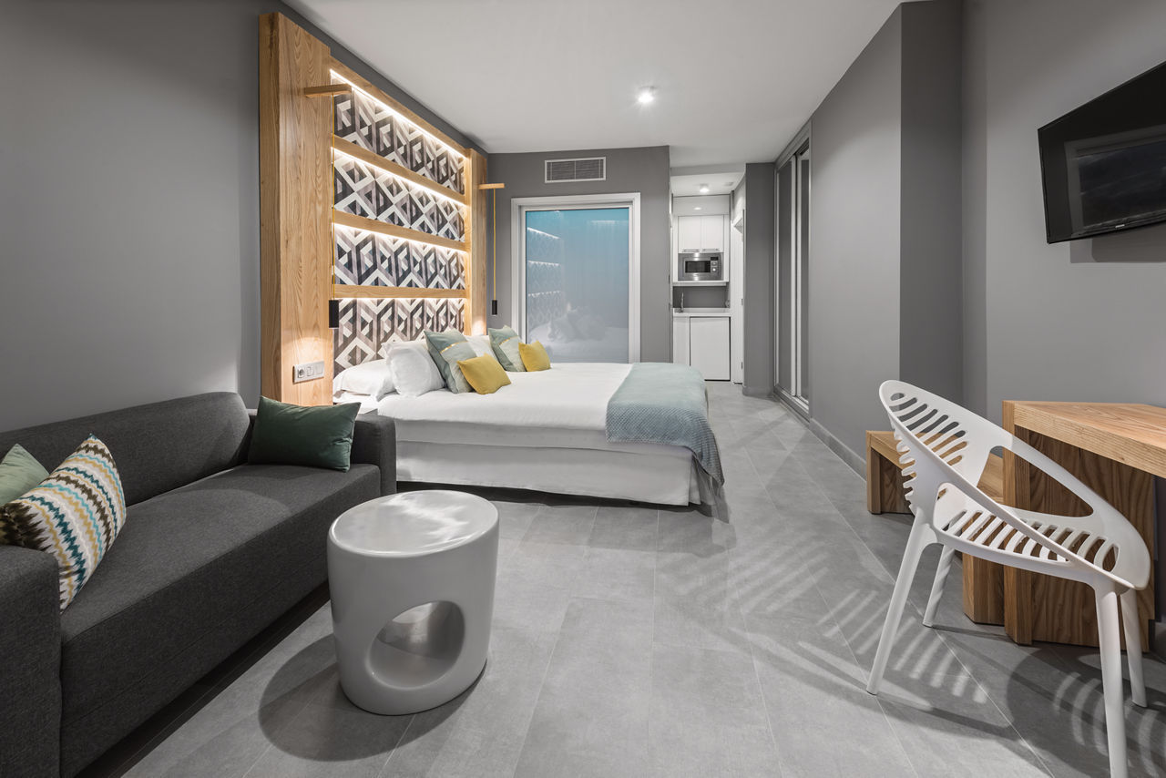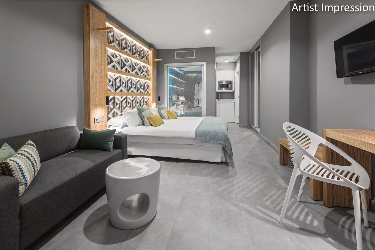 Junior suites sleep up to 2 adults and have bathroom with shower, air conditioning*, hairdryer, flat screen television, safety deposit box*, fridge, kettle, microwave and balcony or terrace.