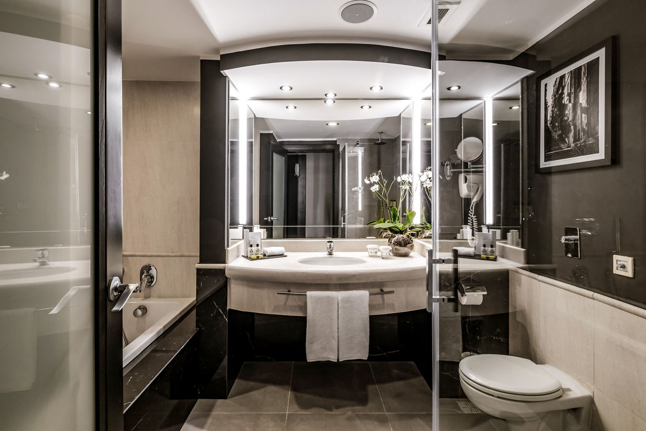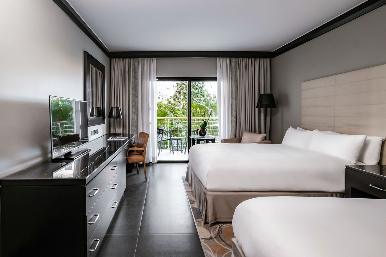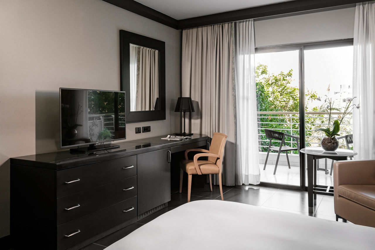 Deluxe Double and Twin rooms sleep up to 3 adults or 2 adults and 1 child have a bathroom with bath and separate shower, hairdryer, bathrobe and slippers, air conditioning, flat screen television, Wi-Fi, safety deposit box, iron and ironing board, tea and coffee making facilities, mini-bar* and a balcony. Room upgrade options are also available.
