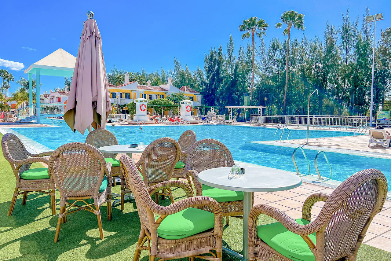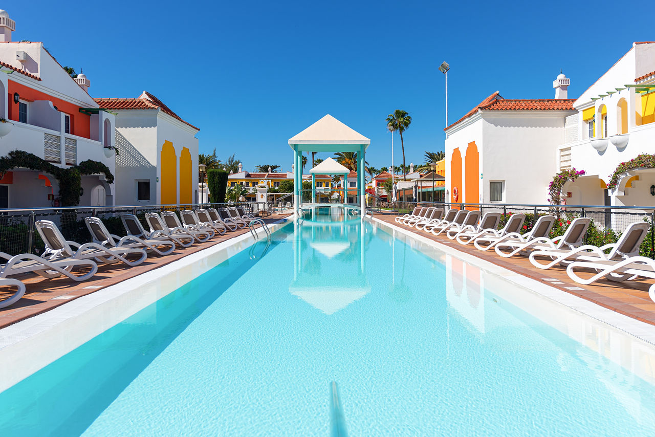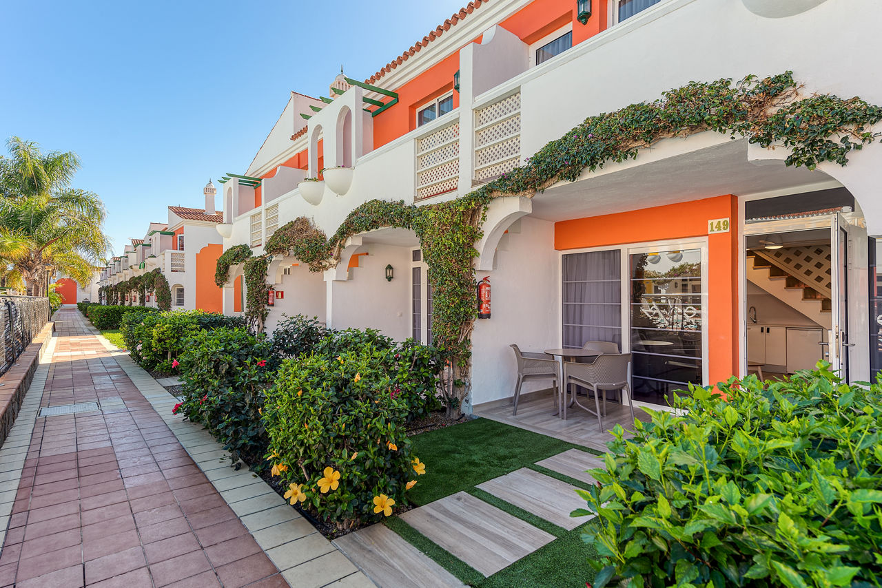 Enjoying a fabulous and peaceful location right next to the Maspalomas golf course, this colourful complex has a friendly, village feel centred around a gorgeous swimming pool. These spacious 2 storey bungalows have a homely feel and are perfect for a relaxing sunshine holiday. The famous sand dunes of Maspalomas are close by, as well as the upmarket resort of Meloneras, where you can indulge in designer shopping or watch the world go by in one of the many bars and restaurants on the seafront promenade. The party town of Playa Del Ingles is also just a short taxi ride away!
