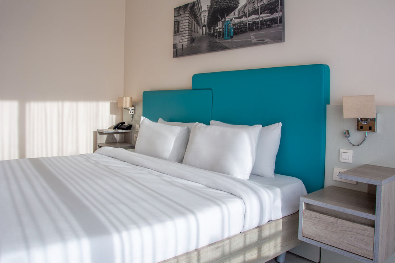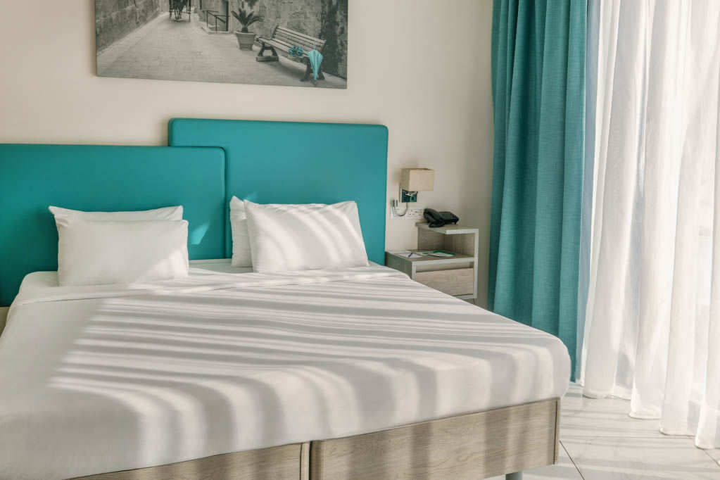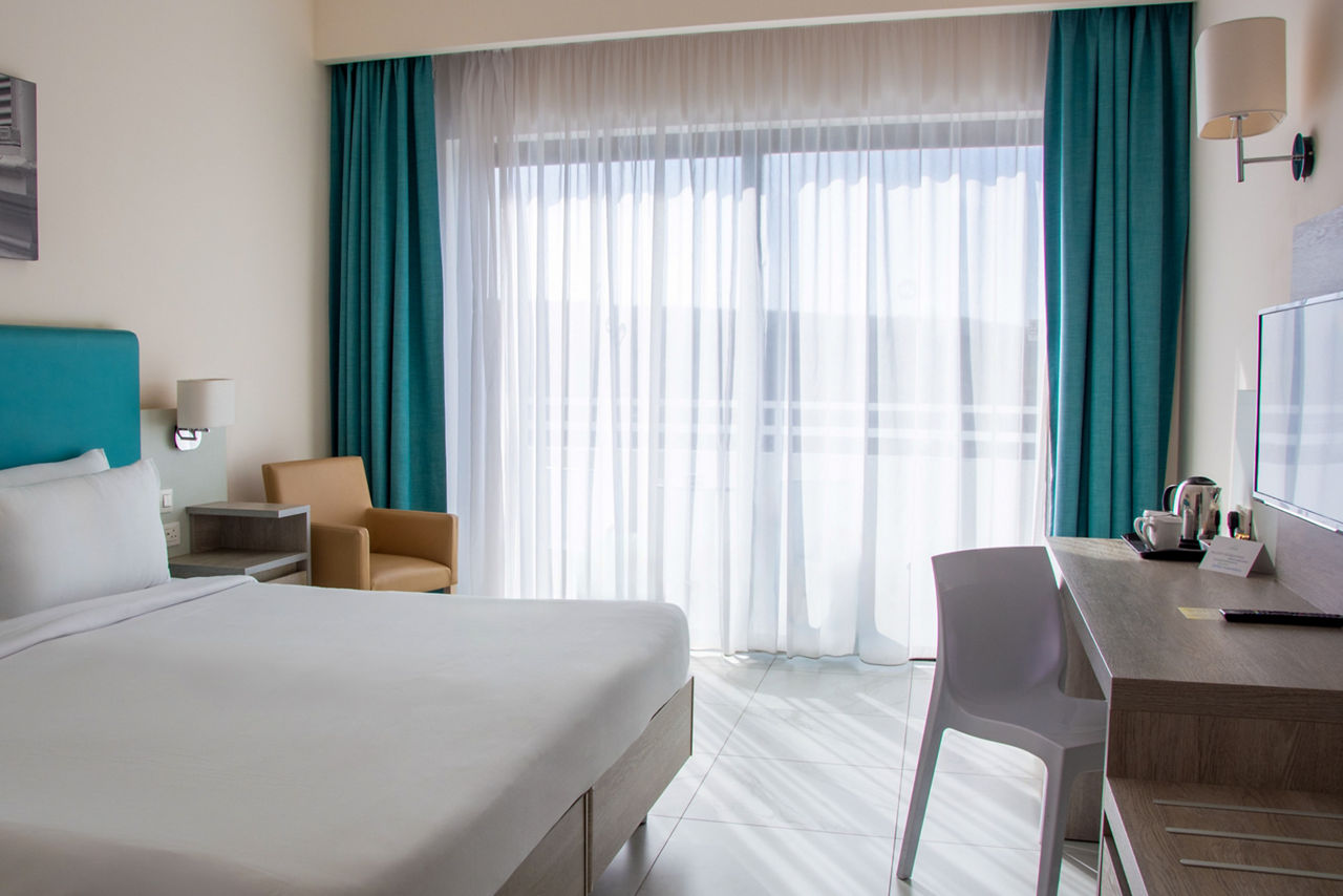 Standard Double and Twin rooms sleep up to 3 adults and have bathroom containing a bath with shower attachment, air conditioning (May-Sep), hairdryer, flat screen television, fridge and balcony. Standard Double and Twin rooms with Pool View, Standard Double and Twin rooms with Sea View and Standard Double rooms for Sole Use are also available.