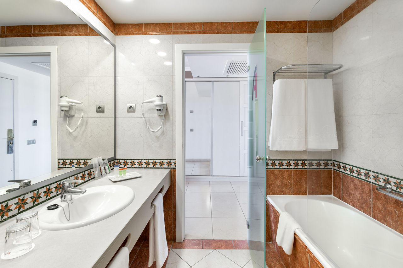 Standard Double rooms sleep up to 3 adults and 1 child and have bathroom containing a bath or shower, air conditioning, hairdryer, flat screen television and balcony or terrace. Room upgrade options and Sole Use rooms are also available.