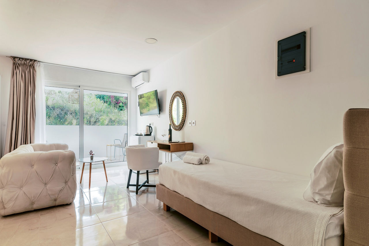 Bamboo Suites Boutique Hotel boasts a cool pool scene and relaxing vibe. Guests can indulge with a refreshing cocktail in hand, enjoy delicious bites from the restaurant and soak up the summer sun! Not only is there a beach close by but Rhodes Town is only a short taxi ride away to explore.