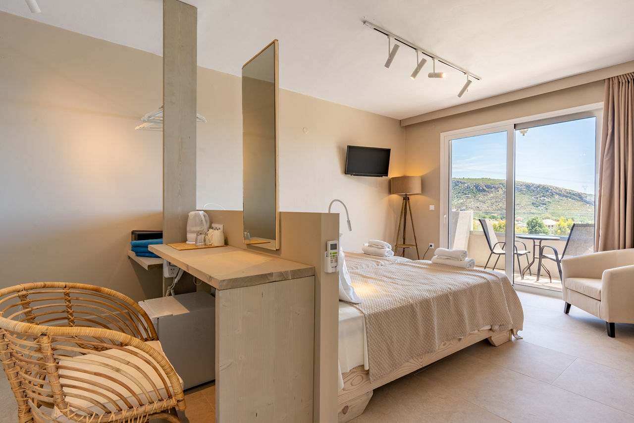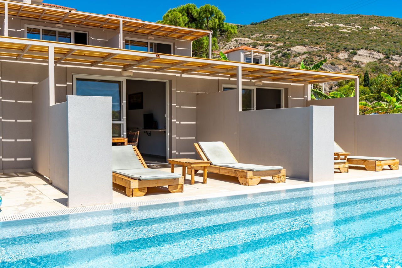 Nestled in the picturesque resort of Katelios, Pacifae Golden Village embodies tranquillity and comfort. With spacious and stylish rooms, some that come with a pool, along with the hotels idyllic setting surrounded by lush greenery and mountains this beautiful hotel offers a haven for relaxation seekers and adventurers alike. Guests can immerse themselves in the beauty of nature while indulging in the onsite restaurant with traditional home cooked food or enjoying a drink from the cocktail bar. It goes without staying that their famous Greek hospitality and service comes as standard.