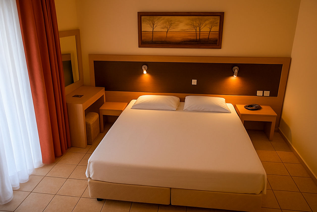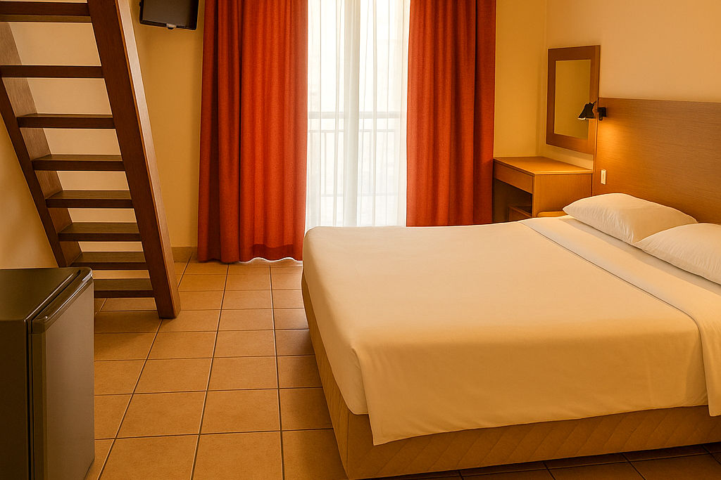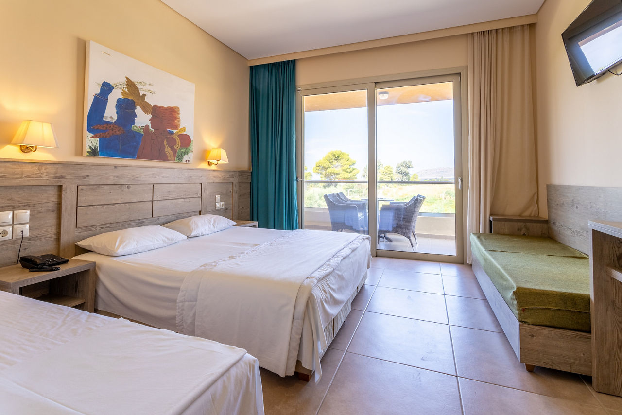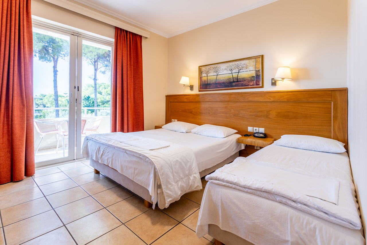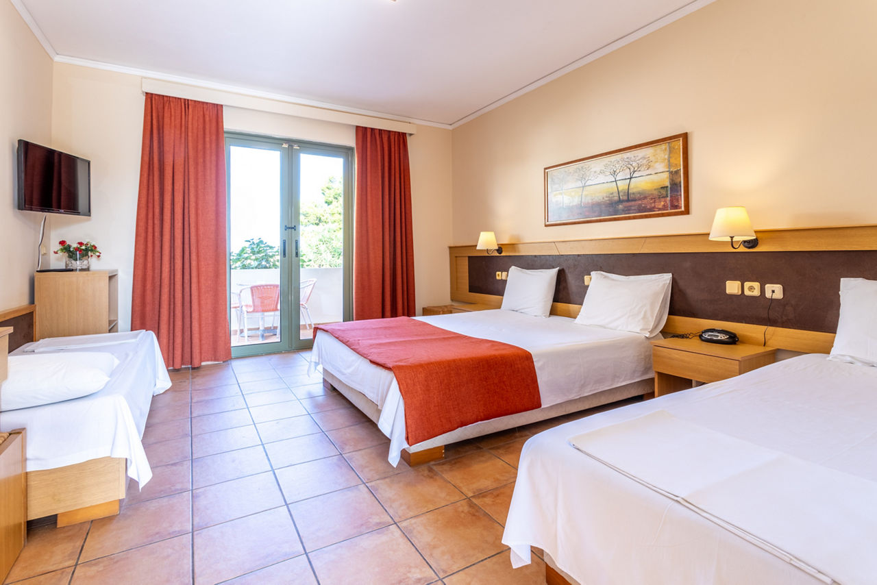 Double and Twin rooms sleep up to 3 adults and have bathroom containing a bath or shower, air conditioning*, hairdryer, television and balcony or terrace. Family rooms and Maisonettes are also available.