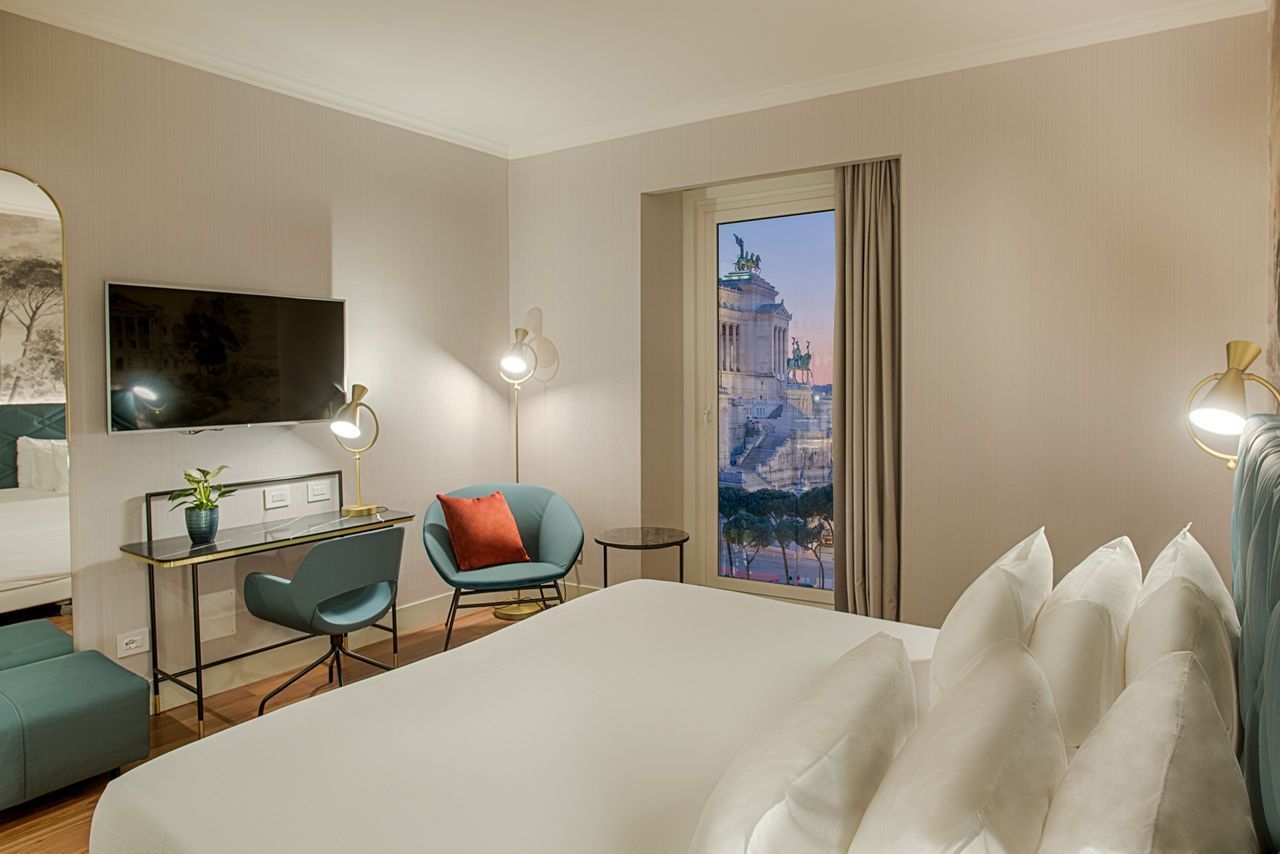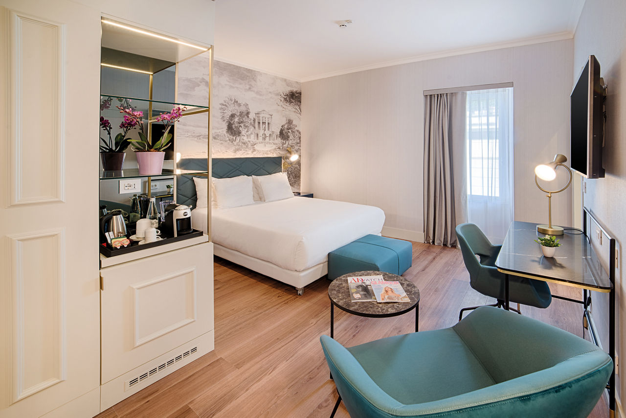 A tapestry of centuries-old history wraps around you in this pristine property. Drink in all the staggering scenery from the boutique NH Collection Roma Fori Imperiali?s impressive rooftop bar. Each ultra-stylish room has been decked out in contemporary turquoises, while the list of perks includes two exquisite à la carte restaurants. Bellissimo! While the jaw-dropping Colosseum and Roman Forum are close by, the rest of Rome's iconic features are a trip away, so explore when it suits you. When you?ve had your fill of days of discovery, let the cocktail menu do the talking. You can?t beat reflecting on the day with a negroni in hand.