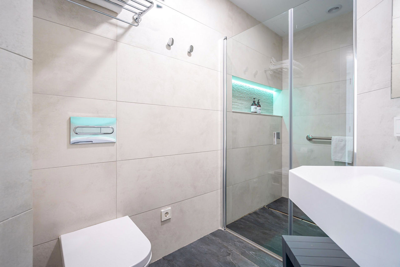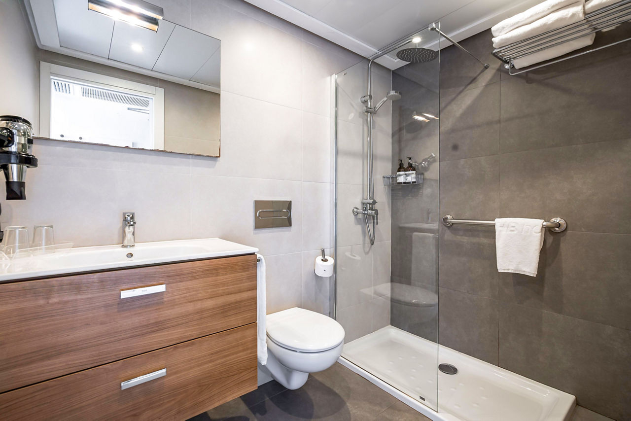 One Bedroom apartments sleep up to 3 adults and 1 child and have bathroom, hairdryer, fridge, microwave and balcony or terrace.