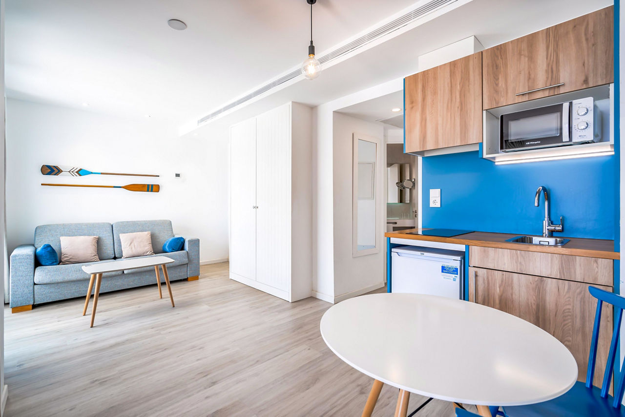 THB Gran Bahia boasts an excellent location overlooking C?an Picafort?s main promenade and sandy beach. The pool scene here really is idyllic with views of crystal-clear Mediterranean Sea to enjoy as you soak up the sunshine. In need of refreshment? Head over to the pool bar and à la carte restaurant and choose a cocktail to accompany a tasty dish. The buffet restaurant offers a great choice with freshly cooked dishes for breakfast and dinner. Couples, groups or families looking for modern, fully-equipped apartments in a superb location will find this the perfect choice.