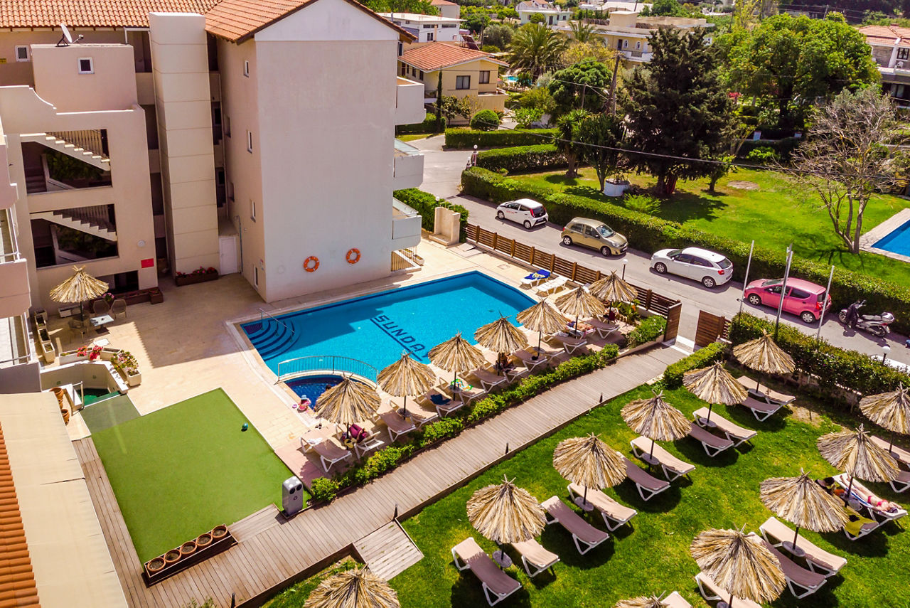 This family-run property is located near the beach and is ideal for couples, families, and groups looking for a relaxing holiday soaking up the sun. Close to the resort centre, where you can experience the Greek way of life, the Sunday Hotel is modern and contemporary with a selection of room choices, from studios to maisonettes, suitable for all guests. The property also boasts a fantastic traditional Greek restaurant filled with authentic, delicious home cooking which is definitely worth the visit.