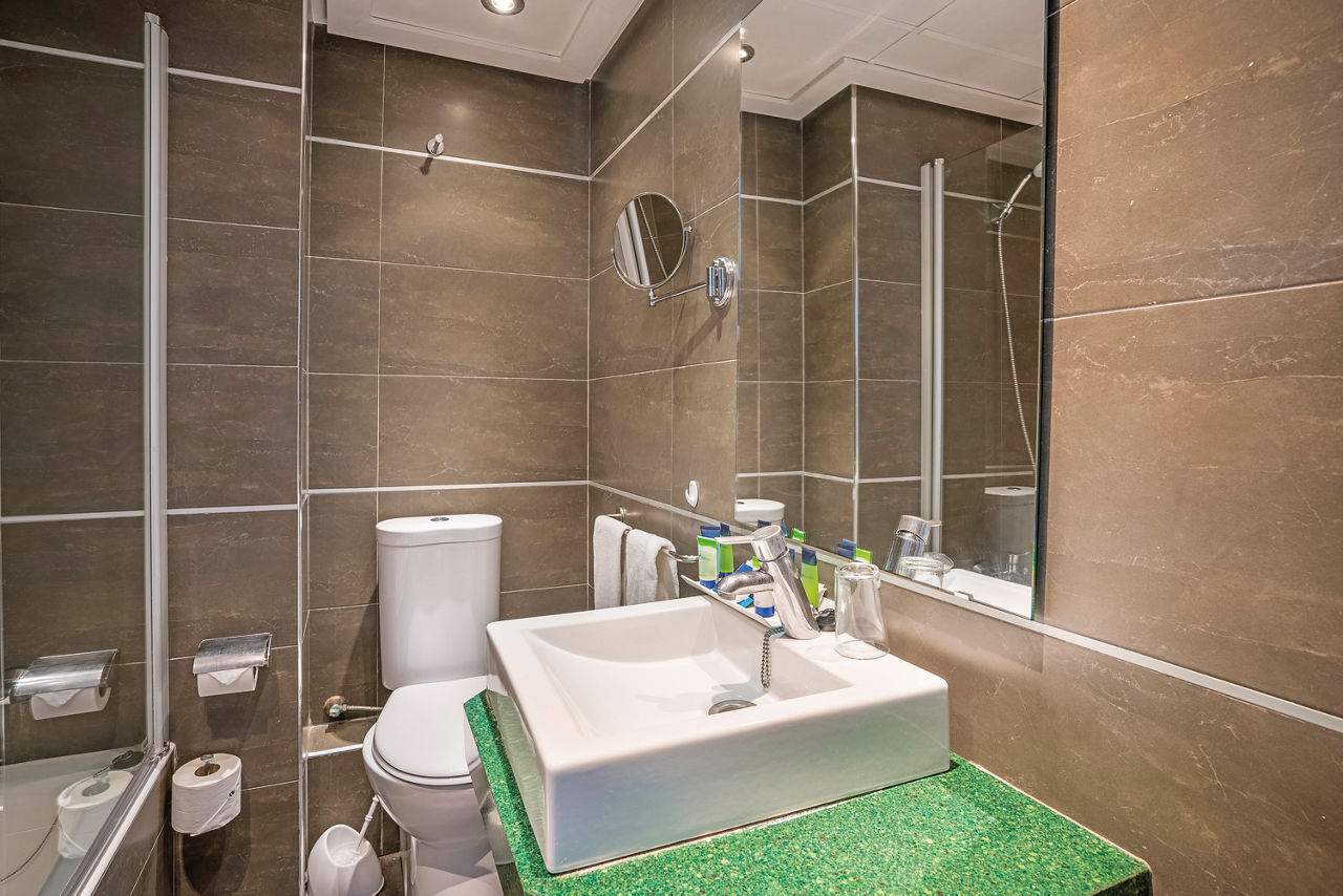 Twin rooms sleep up to 3 adults and have bathroom containing a bath with shower attachment, air conditioning, hairdryer, flat screen television, fridge, kettle and balcony or terrace. Single rooms are also available.