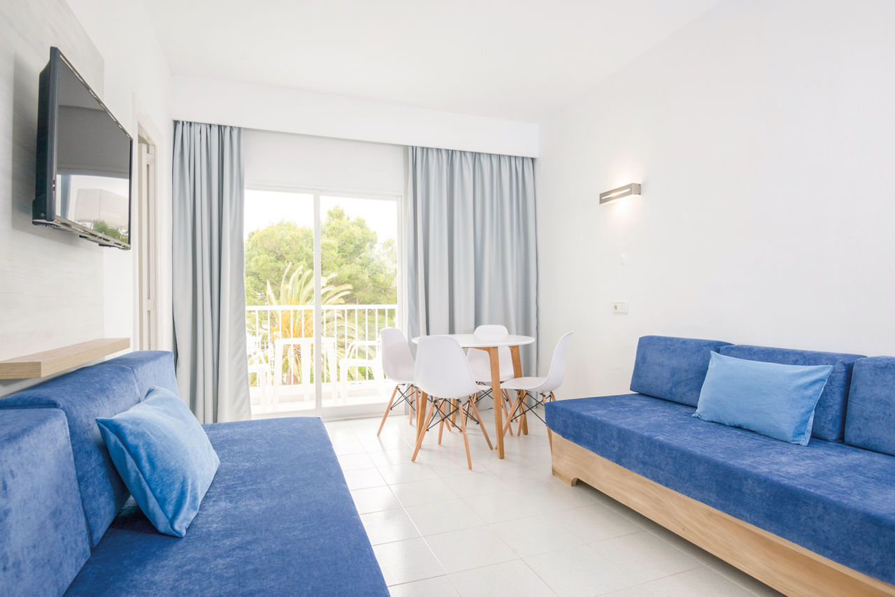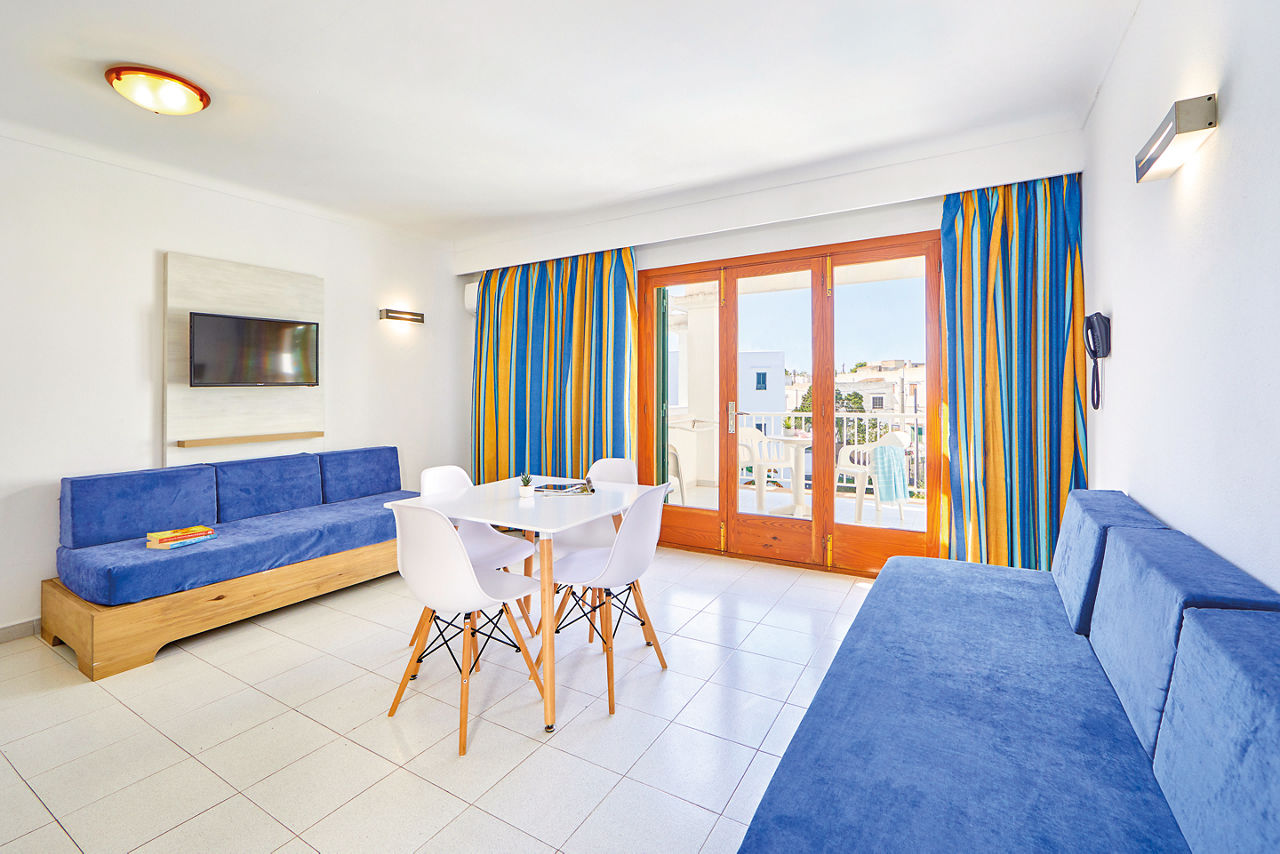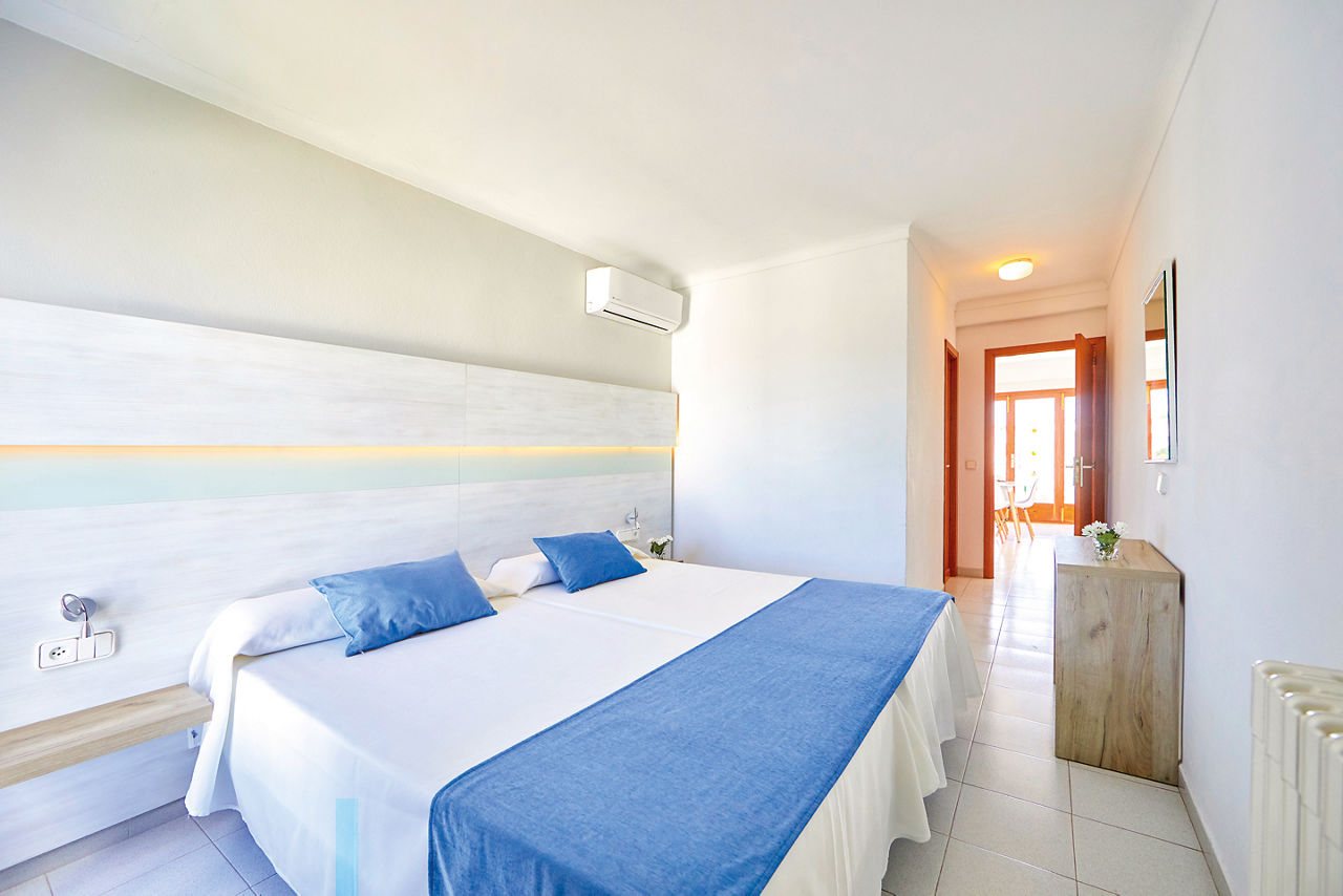 Double rooms sleep up to 3 adults and have bathroom containing a bath with shower attachment, air conditioning (15 May-15 Sep), television and balcony or terrace. Studios and One Bedroom apartments are also available.