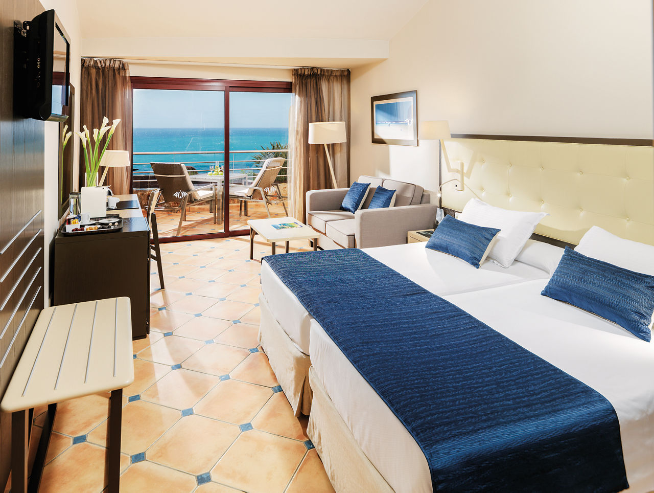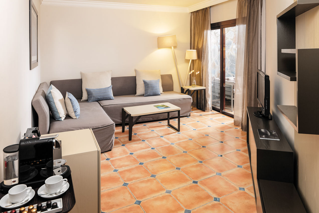 Double rooms with Garden View sleep up to 3 adults and have double or twin beds, full bathroom, hairdryer, air conditioning, satellite TV and balcony or terrace. Double rooms with Sea View, Suites sleeping up to 3 adults or 2 adults and 2 children and Double rooms with Garden View for Sole Use are also available. Superior Privilege rooms are also available and inclusive of free access to the Despacio spa centre with discounted treatments, personalised guest service, bathrobe and slippers, welcome gift, pool towels, access to exclusive lounge area and solarium with Balinese beds, a la carte breakfast and dinner, sea or pool views and personalised check-in, are also available.