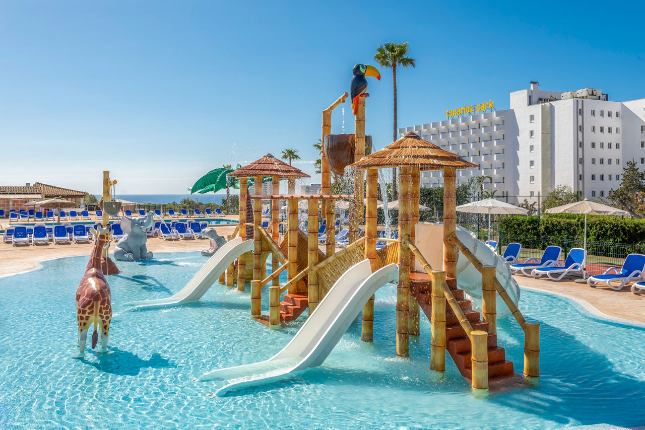 Located in the peaceful resort of Calas de Mallorca, HSM Canarios Park is a great-value choice for families looking for a fun and affordable break in the sun. The hotel?s All Inclusive package means meals, drinks and snacks are all taken care of, helping to keep things simple and stress-free. Kids will love the jungle-themed splash park, while the main pool area offers plenty of space for everyone to enjoy. There?s also a range of sports facilities including a tennis court and mini golf. Rooms are simply furnished and provide a comfortable base to relax in after busy days enjoying everything the hotel has to offer.