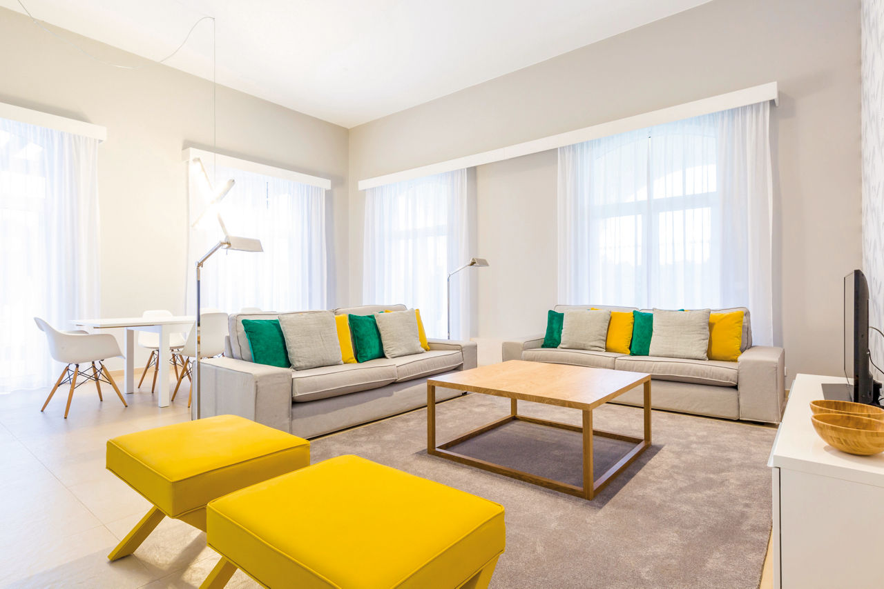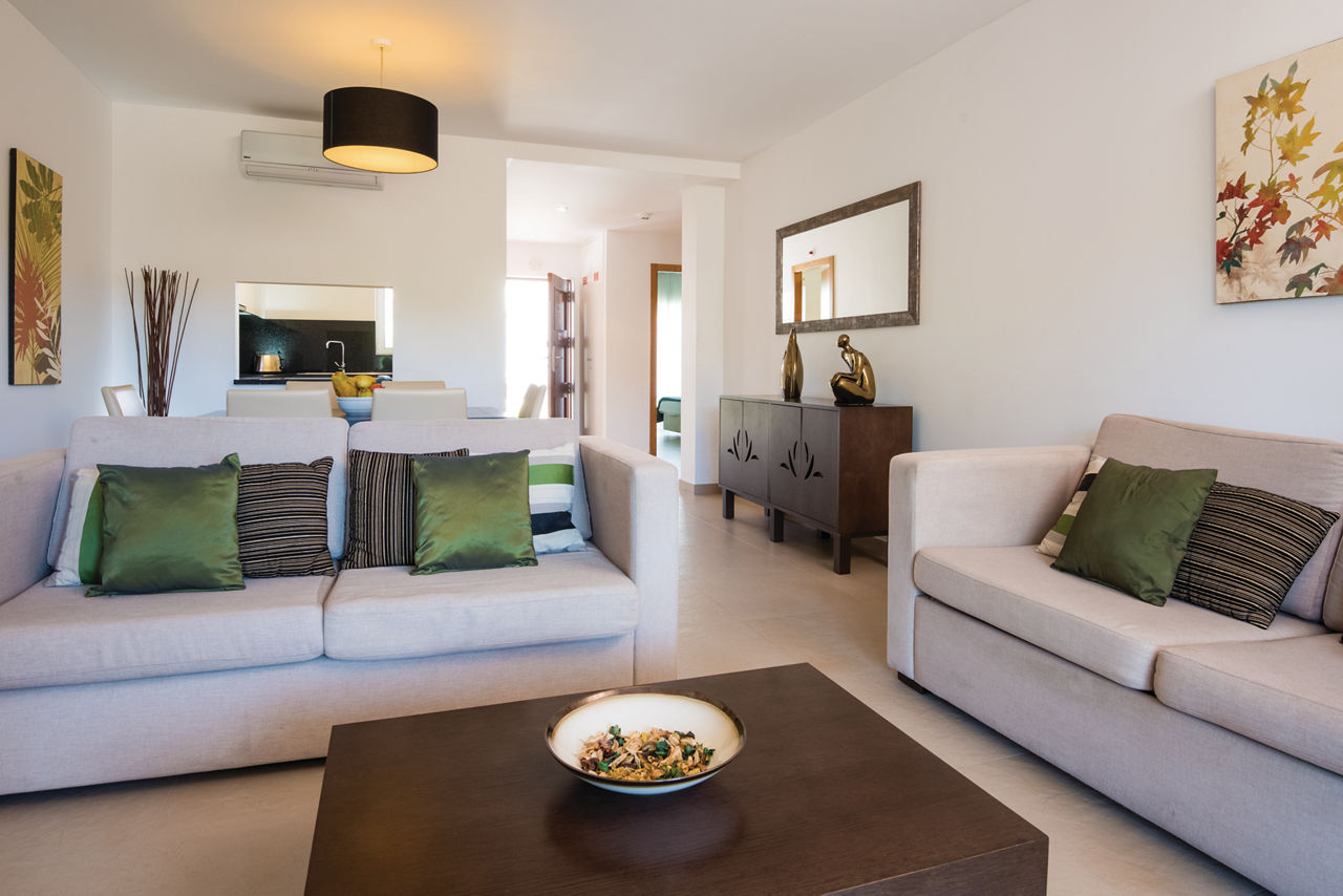 Two Bedroom villas sleep up to 5 adults and have bathroom containing bath with shower attachment, air conditioning, flat screen television, cooking rings, dishwasher, fridge, microwave, oven, toaster and balcony. Three bedroom villas, which are larger in size, and four bedroom villas with private pool are also available.