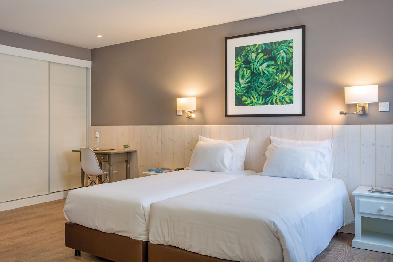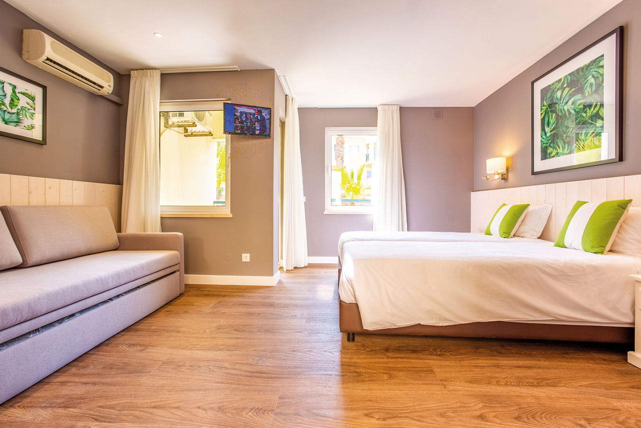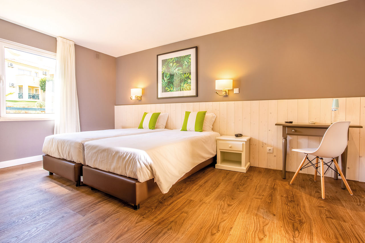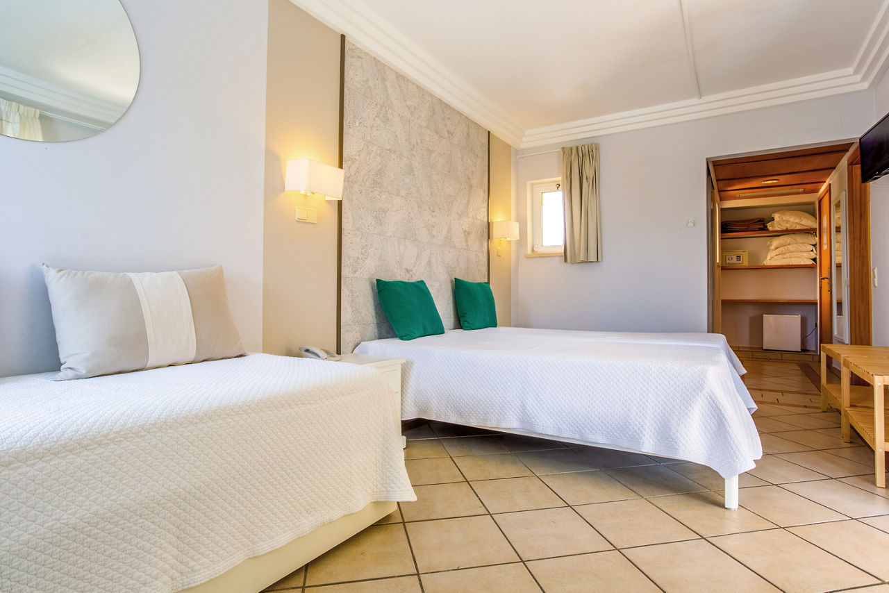 Annex Twin rooms sleep 2 adults and 1 child and have bathroom containing a bath with shower attachment, air conditioning, hairdryer, flat screen television and balcony or terrace. Annexe rooms are located in a building opposite the resort (approximately 3 minutes away). Standard Twin rooms located in the main resort, Large Standard Twin rooms sleeping up to 3 adults and 1 child and Superior rooms with flat screen televisions and Wi-Fi* are also available.